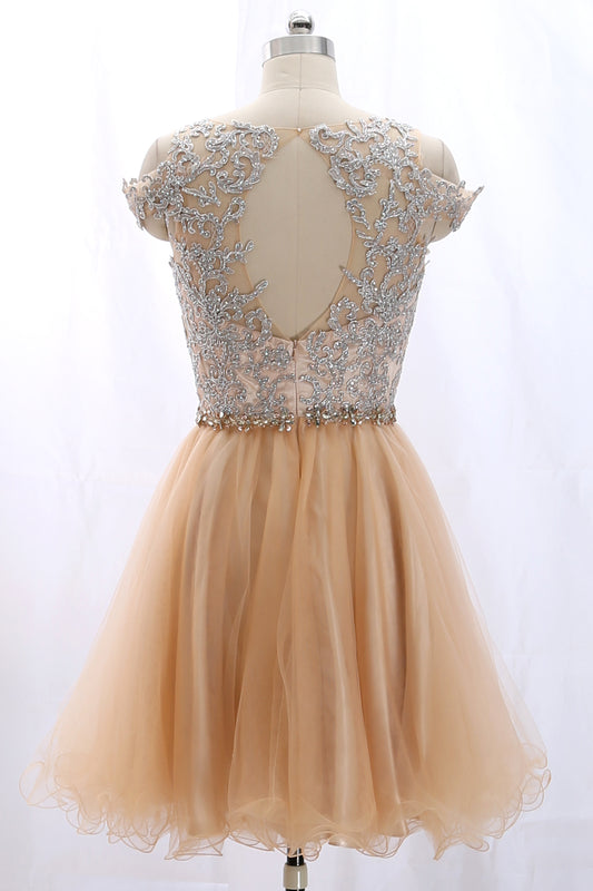 MACloth Off the Shoulder Lace Tulle Champagne Prom Homecoming Dress Cocktail Dress