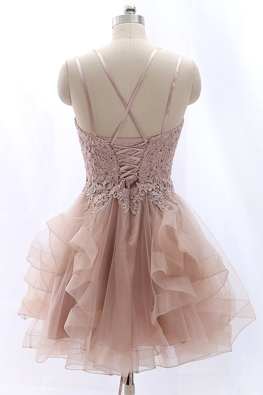 MACloth Spaghetti Straps Lace Tulle Mini Prom Homecoming Dress Vintage Party Formal Gown