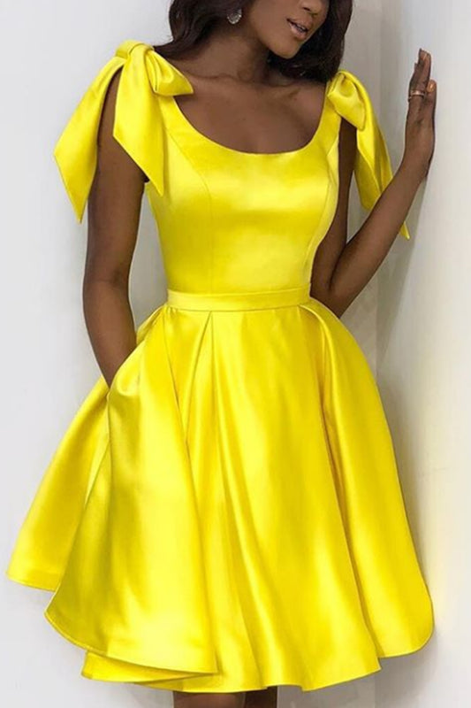 MACloth Straps with Bows Scoop Neck Short Prom Homecoming Dress Red Cocktail Party Dress