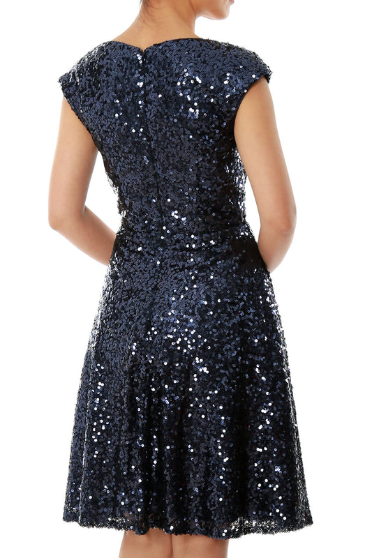 MACloth Women Cap Sleeve Party Formal Gown V Neck Sequin Short Bridesmaid Dress