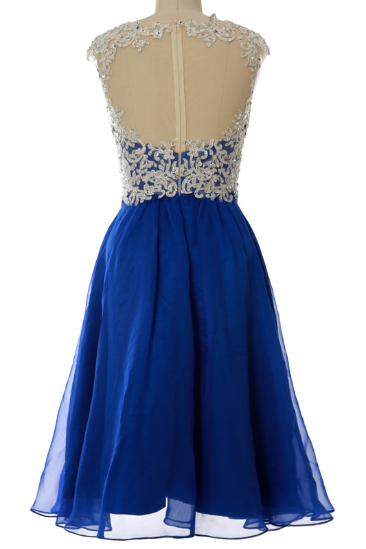 MACloth Women Cap Sleeve Lace Chiffon Short Prom Dress Wedding Party Formal Gown