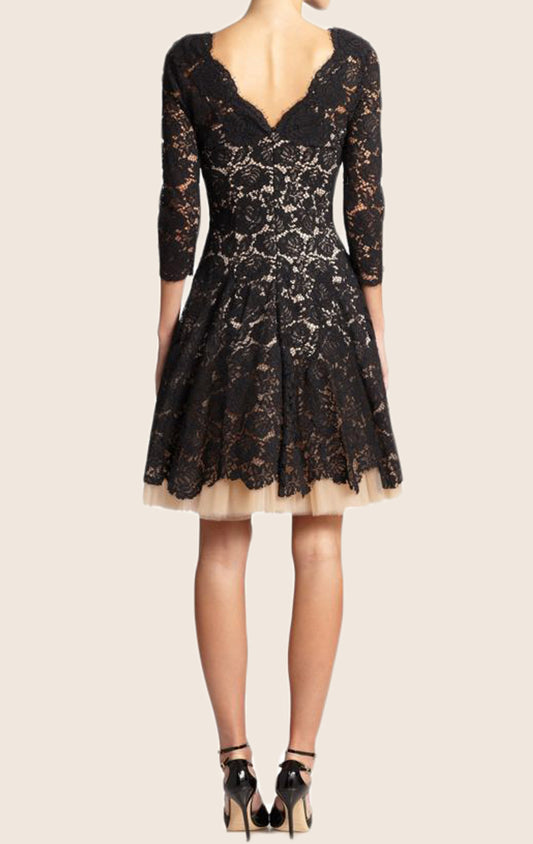MACloth Half Sleeves Short Lace Formal Dress Two Tone Cocktail Dress