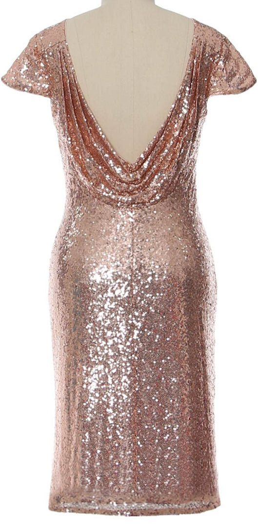 MACloth Gorgeous Sequin Short Bridesmaid Dress Cowl Back Cocktail Formal Gown