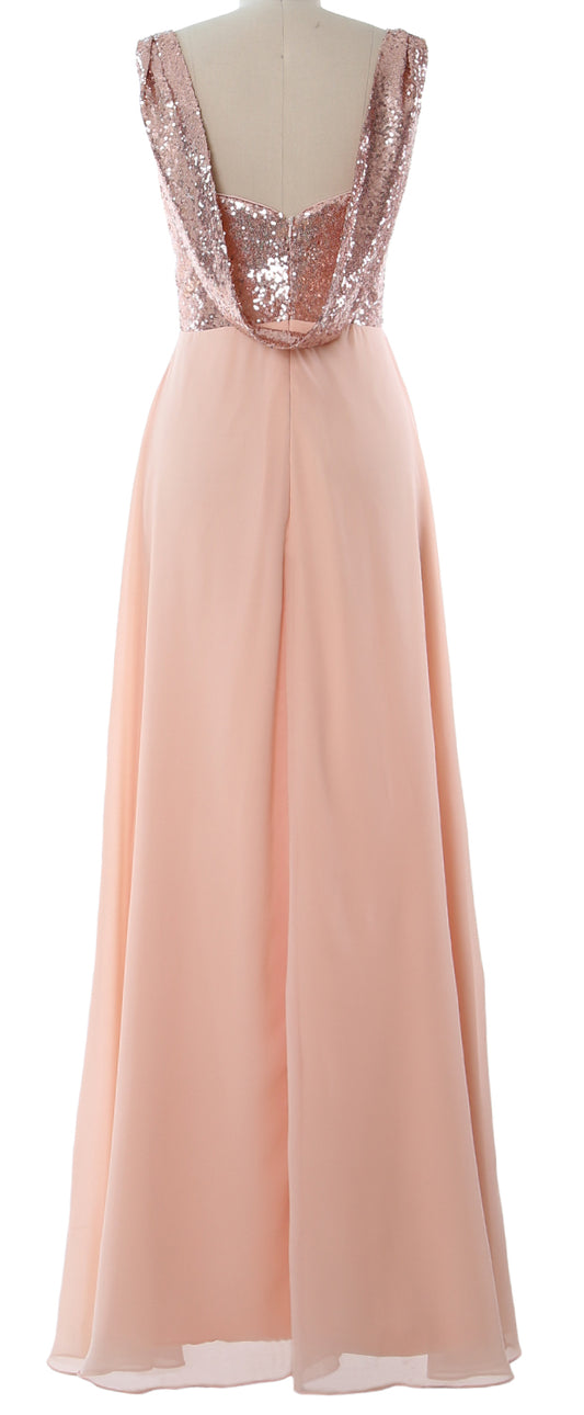 MACloth Women Sequin Chiffon Long Bridesmaid Dress Cowl Back