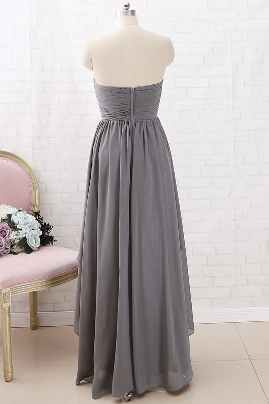 MACloth Trägerloses Sweetheart High Low Brautjungfernkleid Chiffon Grau Abendkleid