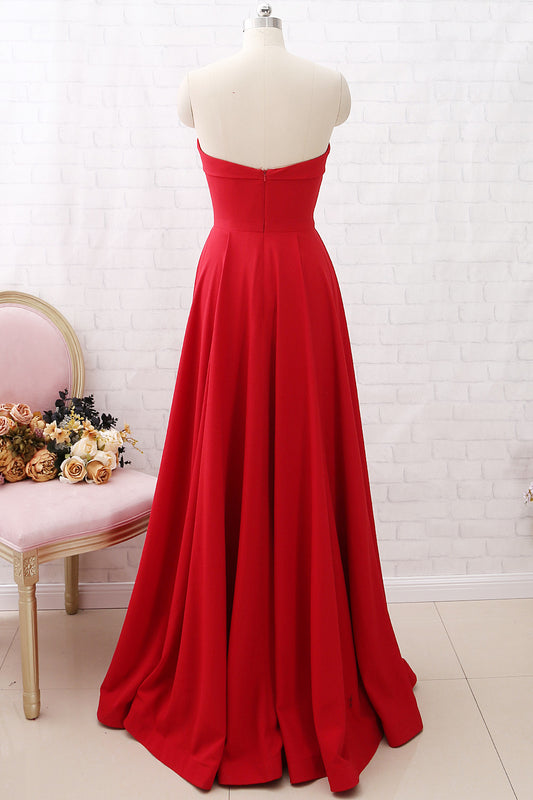 MACloth trägerloses, langes Ballkleid mit Herzausschnitt, rotes, formelles Abendkleid mit Taschen