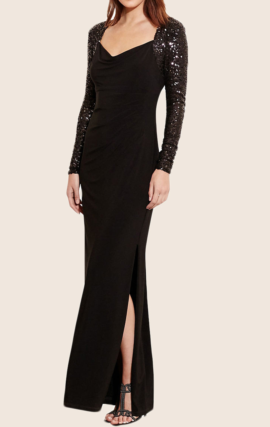MACloth Langärmliges Abendkleid aus Jersey mit Pailletten und Schlitz