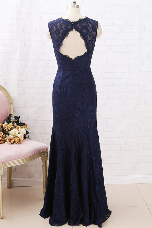 MACloth Meerjungfrau Spitze Langes Brautjungfernkleid Dunkelmarineblau Formales Abendkleid