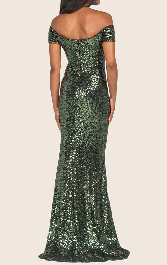 MACloth Meerjungfrau schulterfreies Pailletten-Abendkleid dunkelgrünes Ballkleid