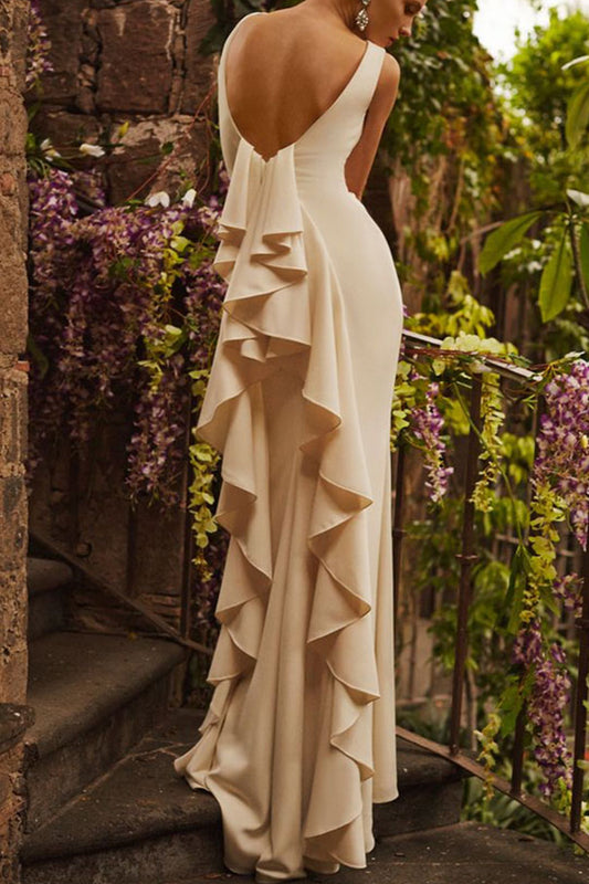 MACloth formelles Abendkleid mit Rüschenärmeln, V-Ausschnitt und Etuikleid