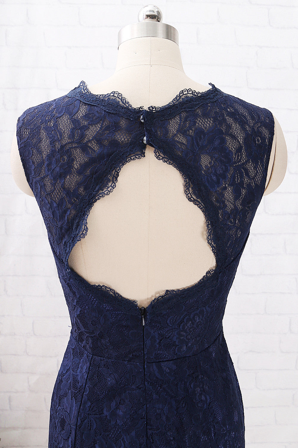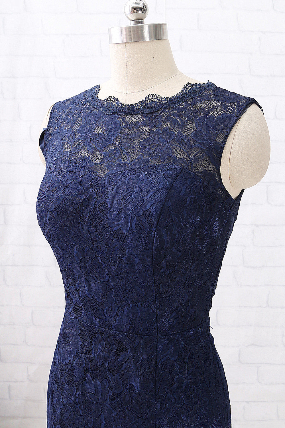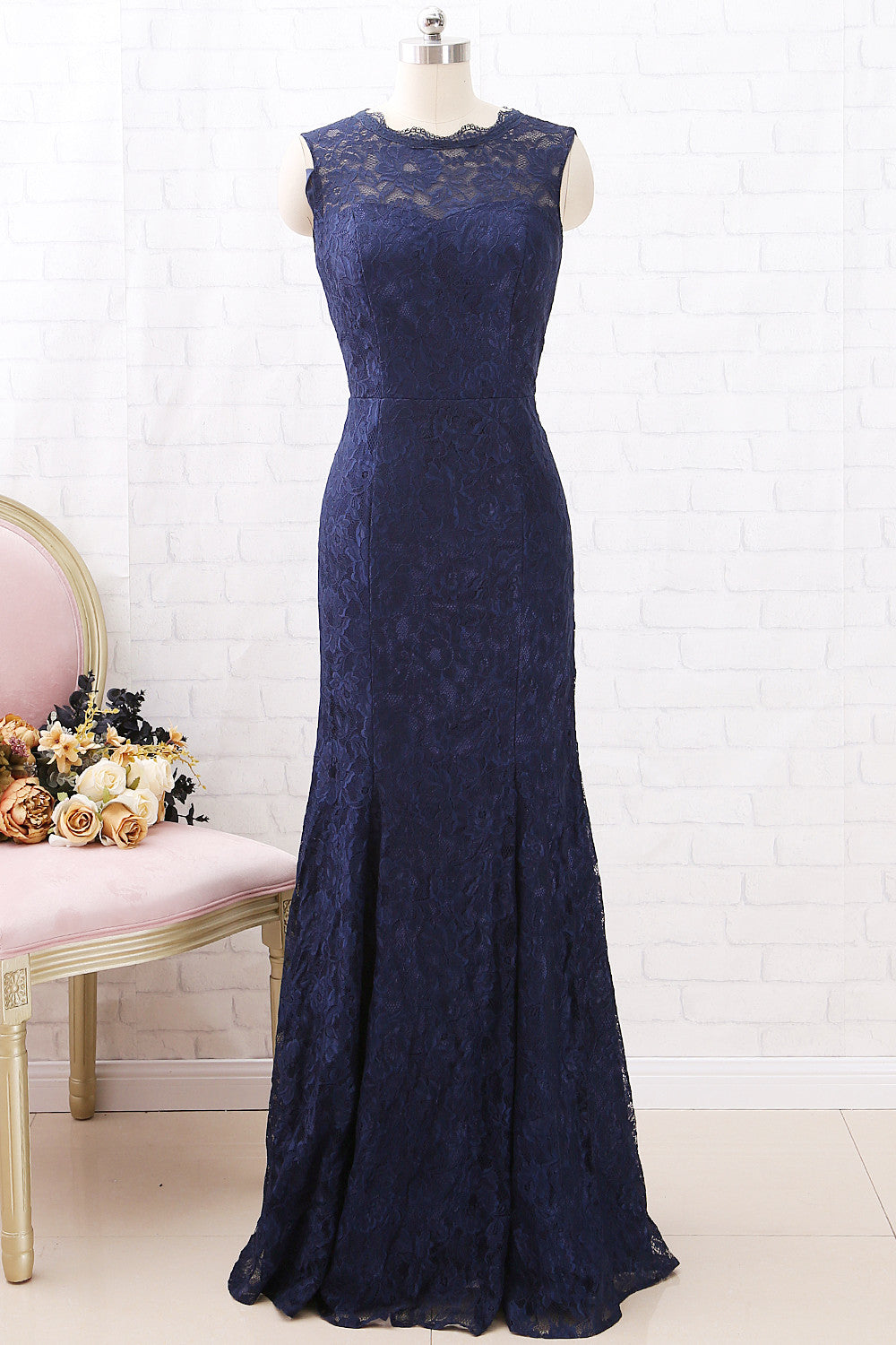 MACloth Meerjungfrau Spitze Langes Brautjungfernkleid Dunkelmarineblau Formales Abendkleid