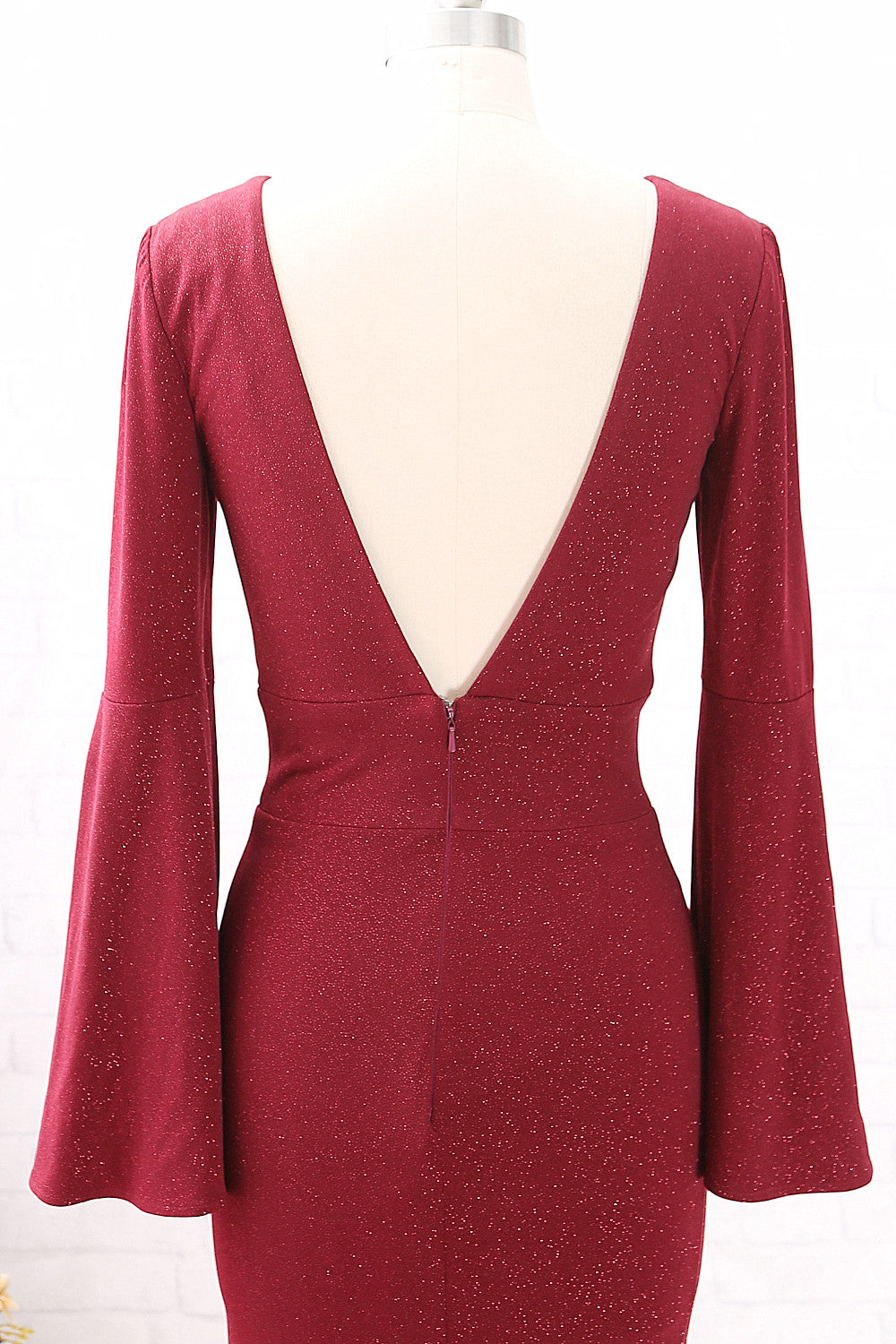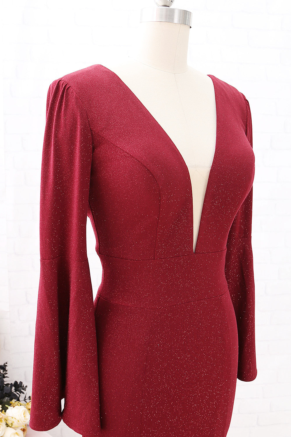 MACloth Meerjungfrau Lange Ärmel V-Ausschnitt Burgunderrot Formelles Abendkleid