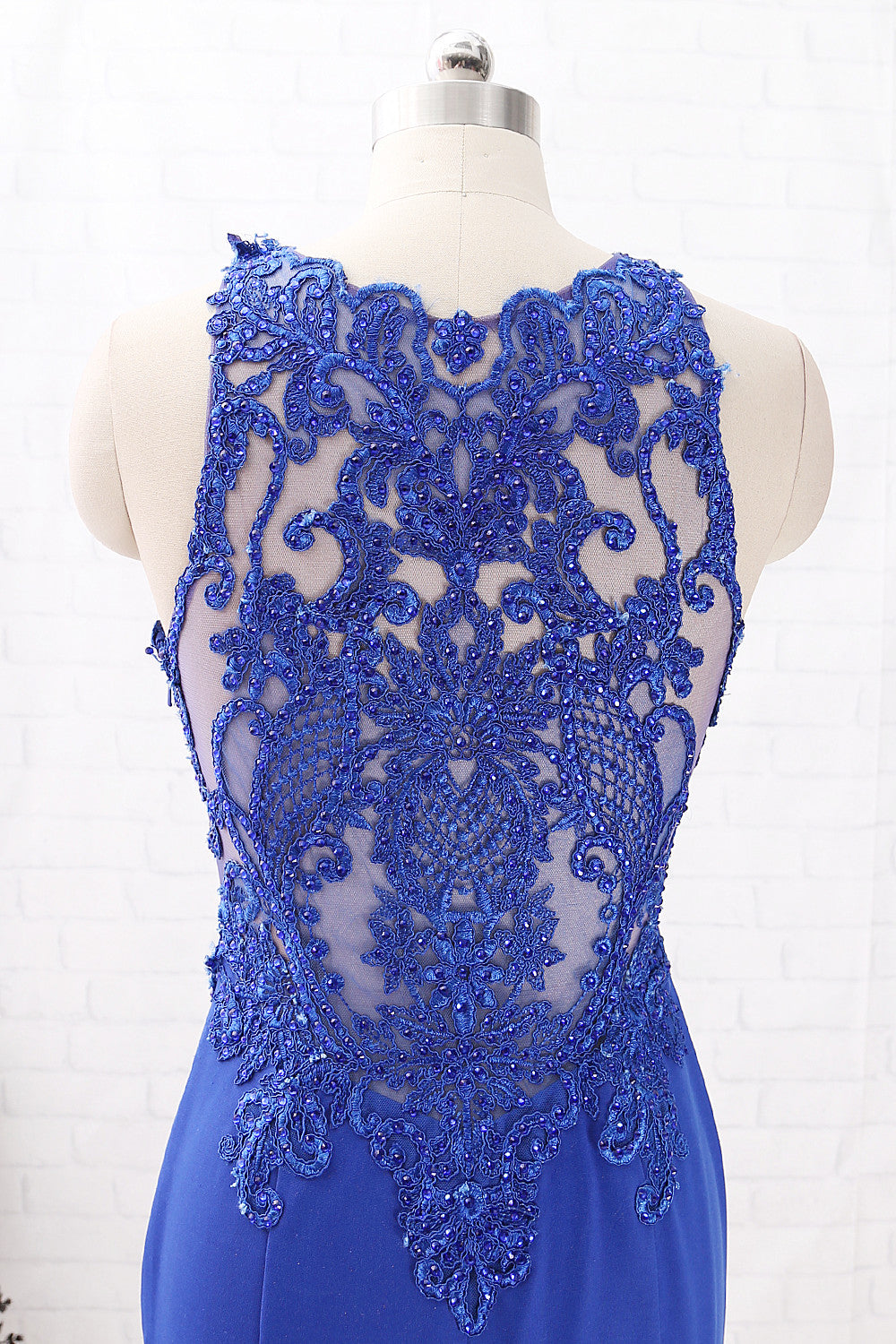MACloth Meerjungfrau O-Ausschnitt Jersey Maxi Ballkleid Königsblau Formales Abendkleid