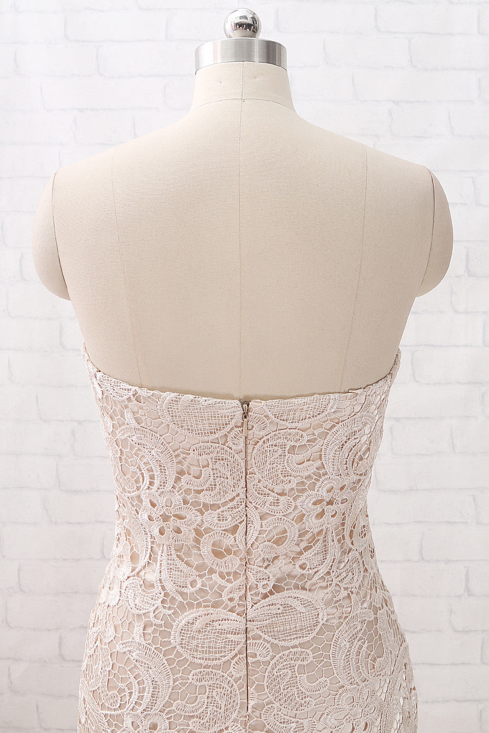 MACloth Meerjungfrau trägerlos Sweetheart langes Spitzen-Ballkleid Champagner formelles Abendkleid
