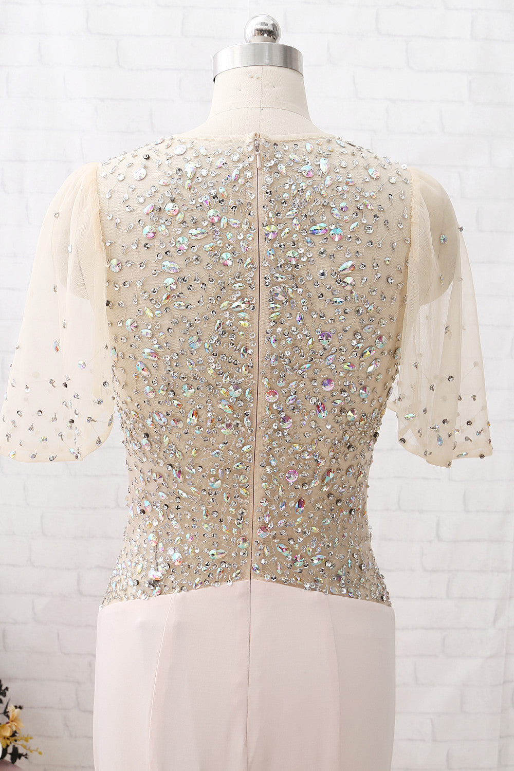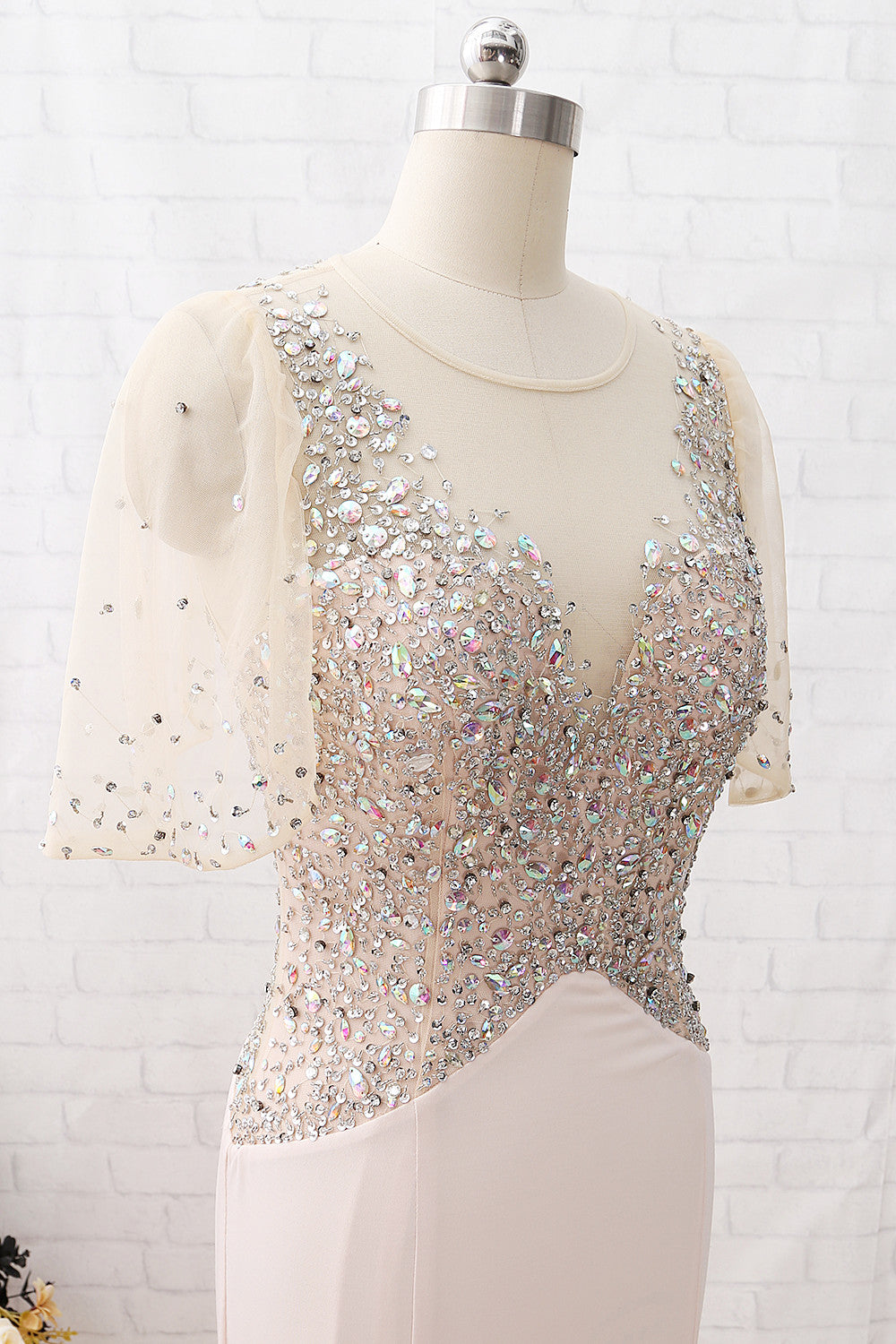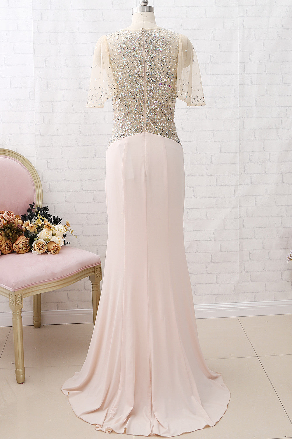 MACloth Kurze Ärmel mit Kristallen Etuikleid Langes Ballkleid Jersey Abendkleid
