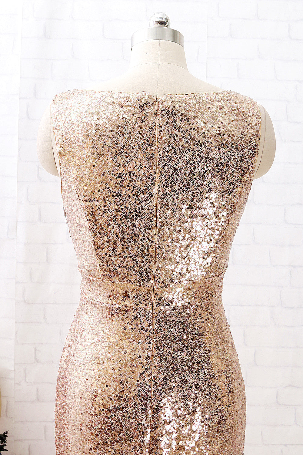 MACloth Träger V-Ausschnitt High Low Pailletten Brautjungfernkleid Schlichtes formelles Abendkleid