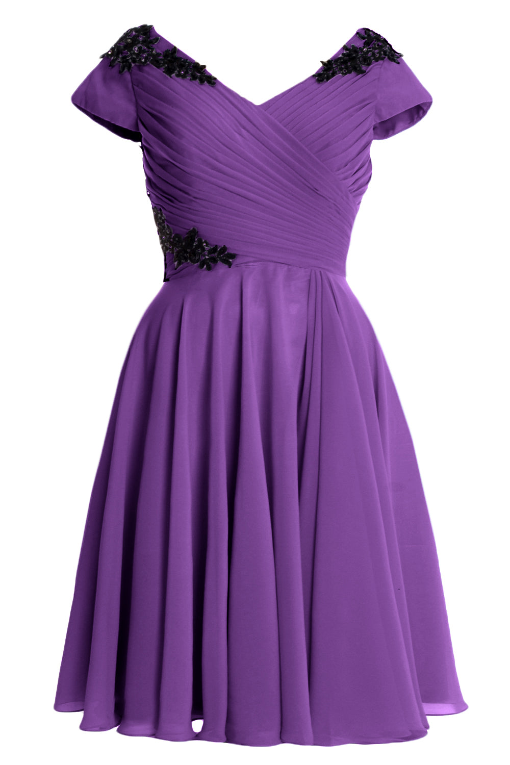 MACloth Damen Kleider für die Brautmutter und den Bräutigam, kurz, Flügelärmel, Brautjungfer, BD MoH