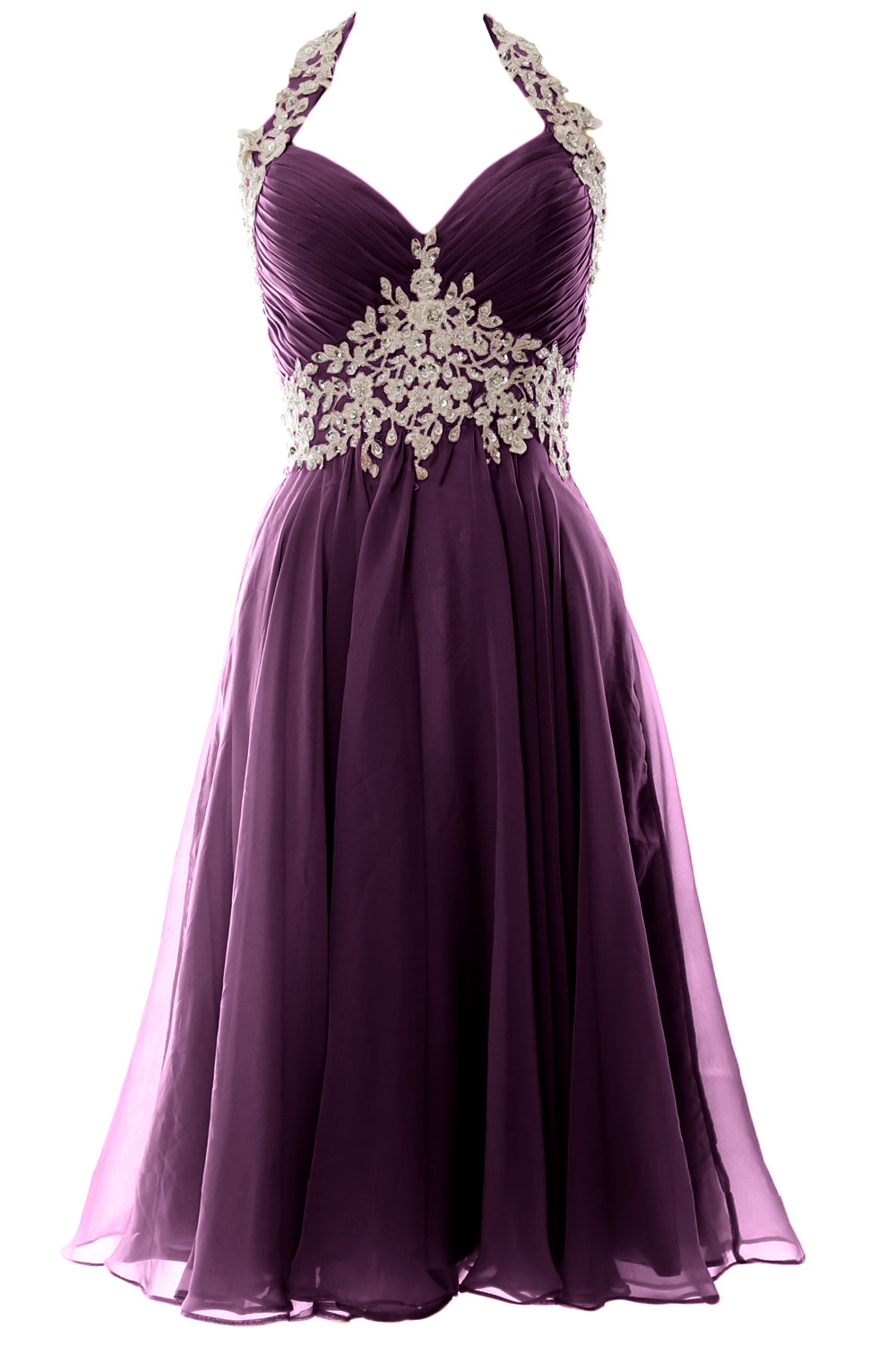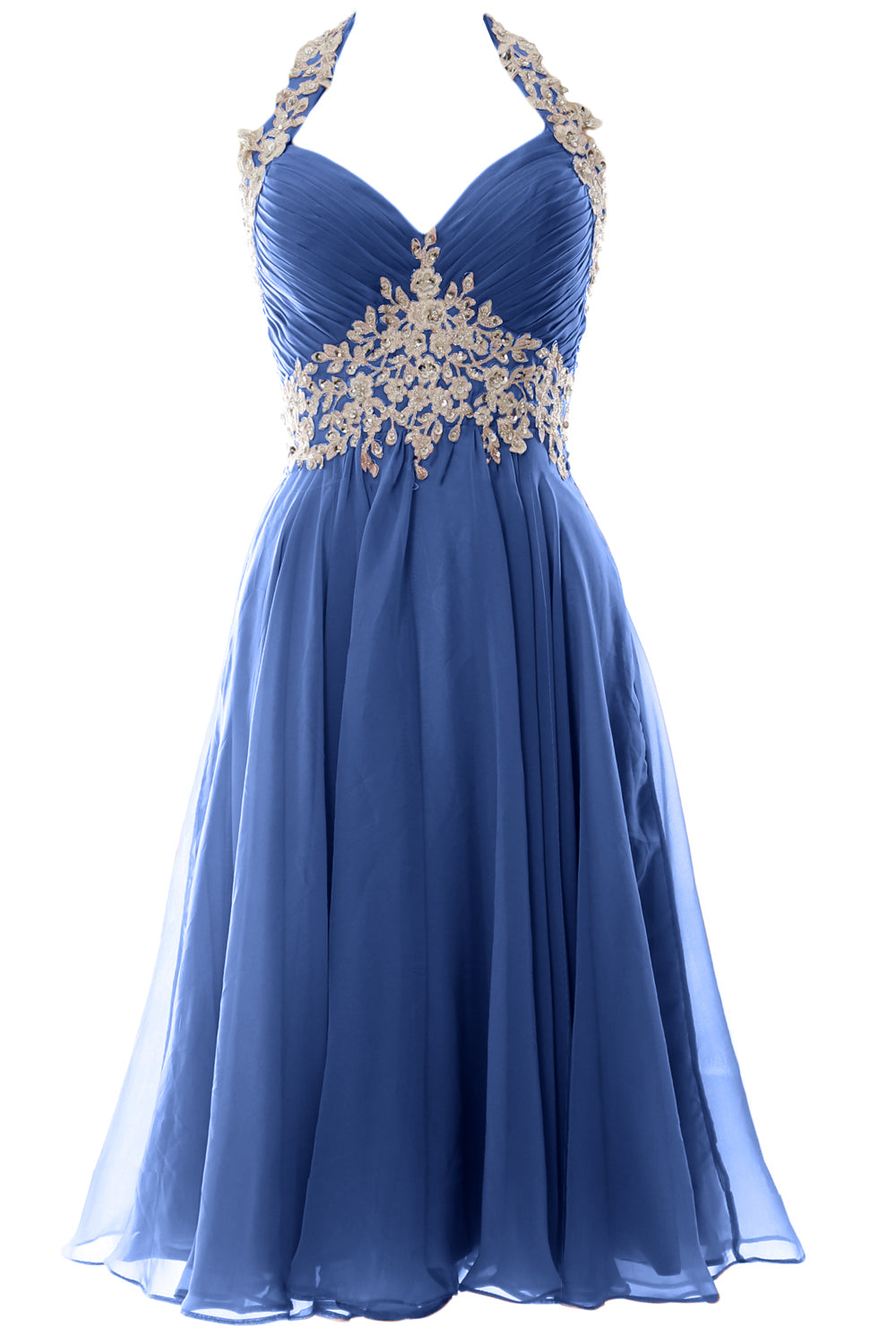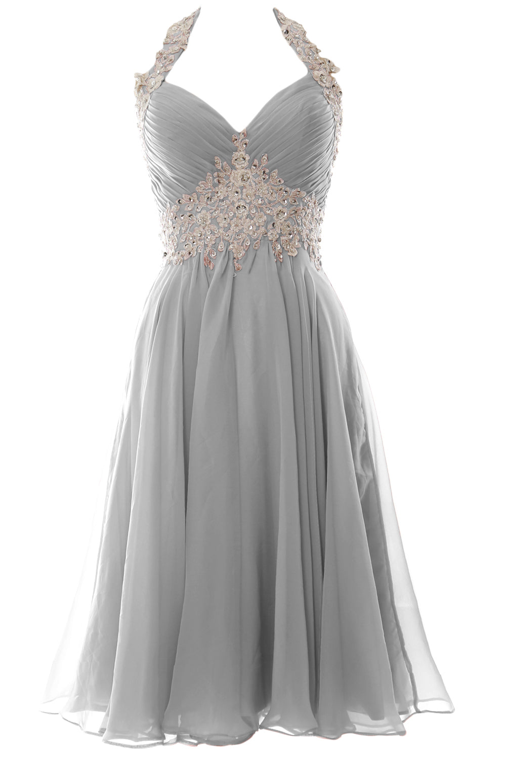 MACloth Damen Neckholder Kurz Spitze Perlenbesetztes Kleid für Hochzeitsgäste Homecoming