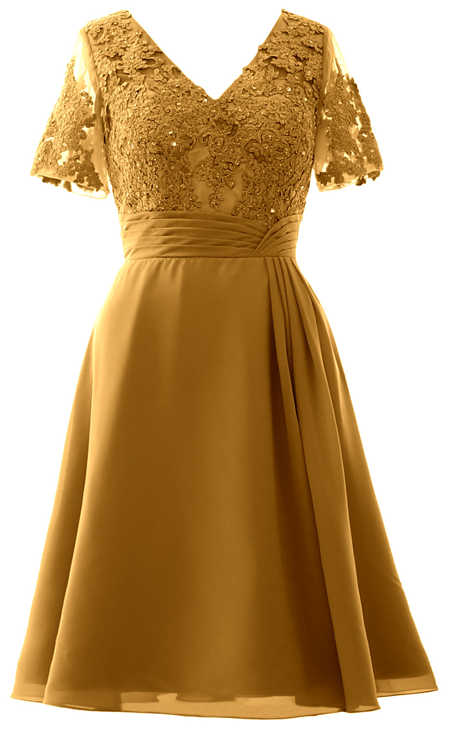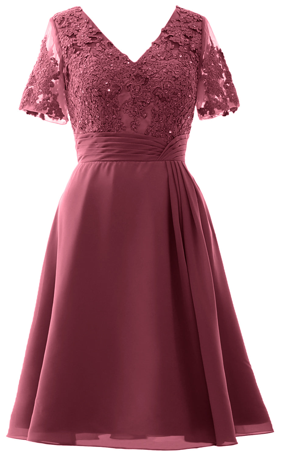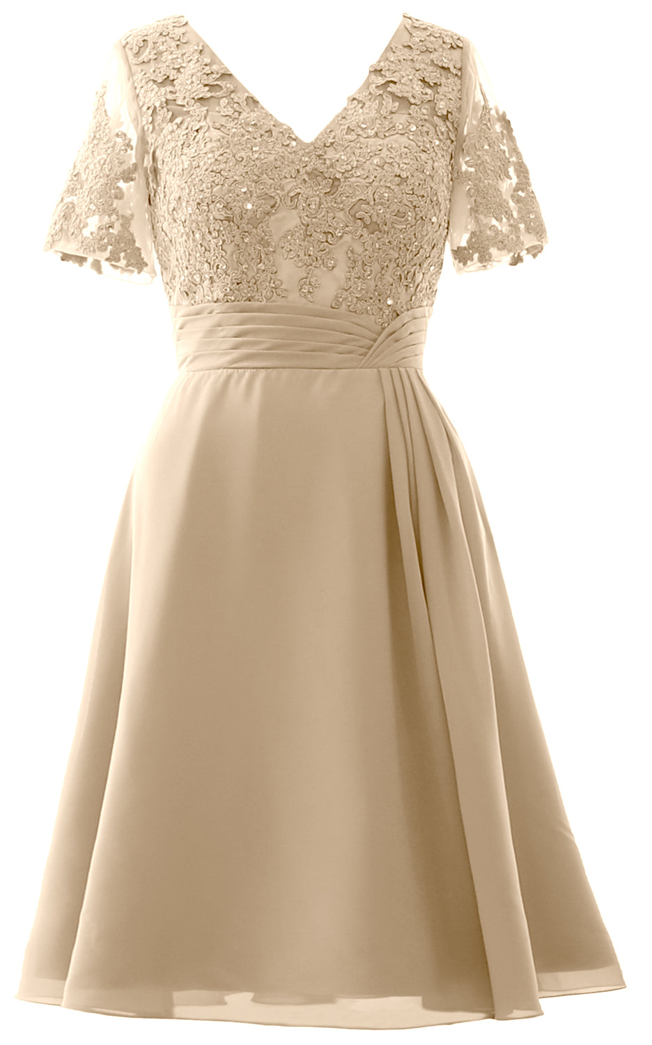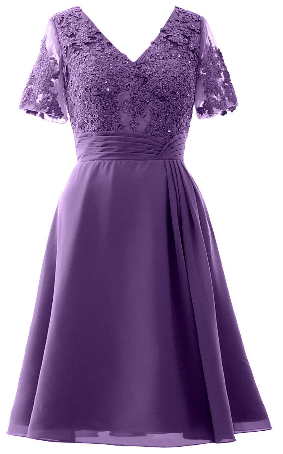 MACloth Frauen Knielange Mutter der Braut Kleider Kurze Ärmel Hochzeit