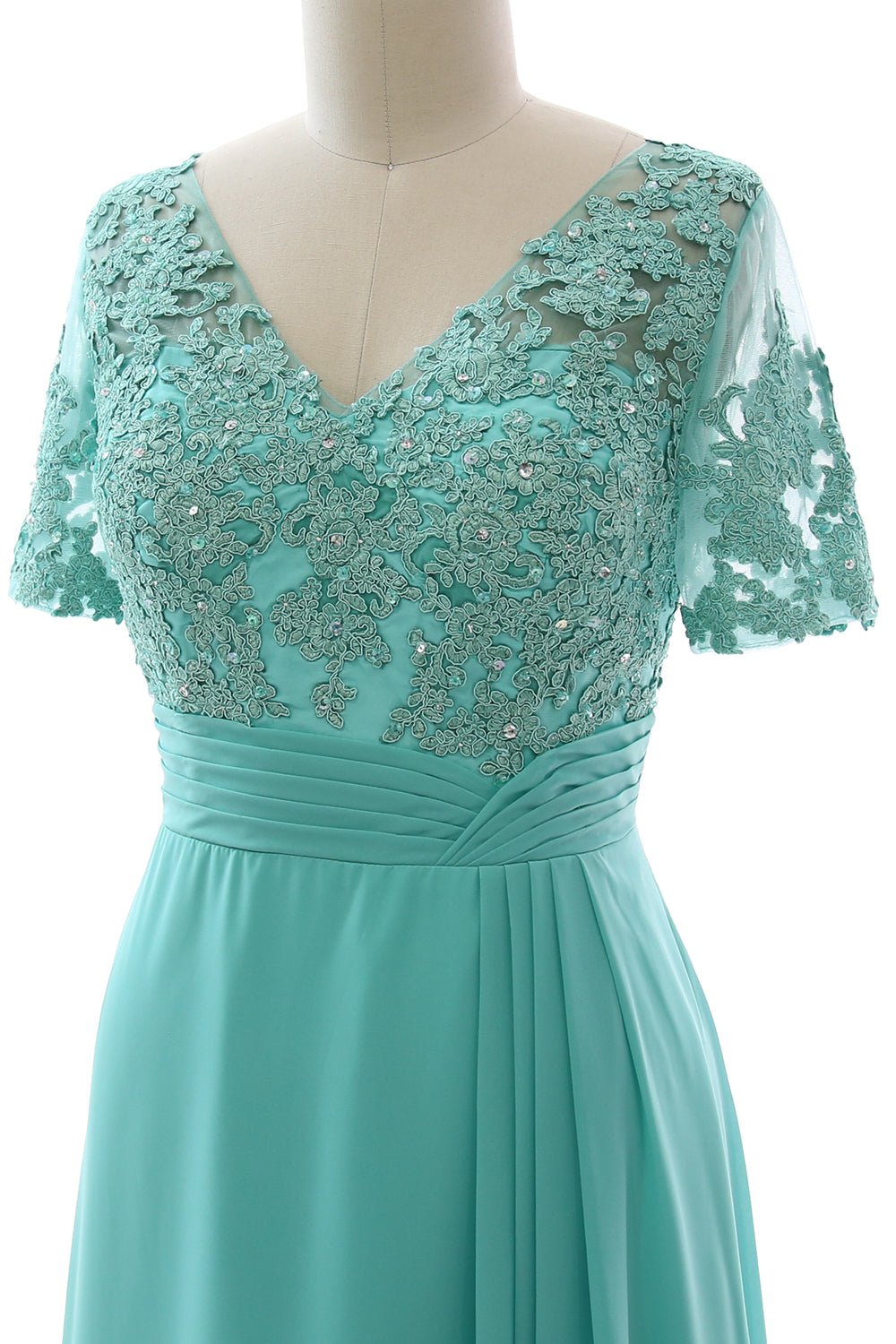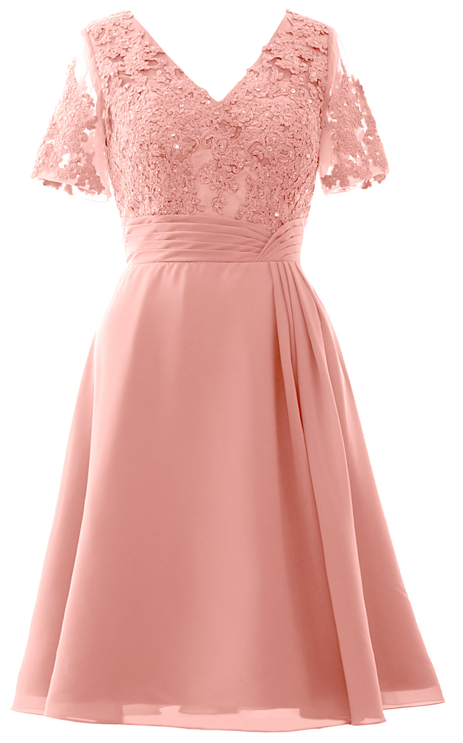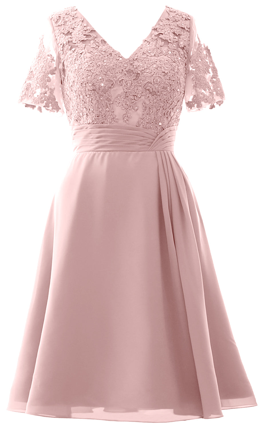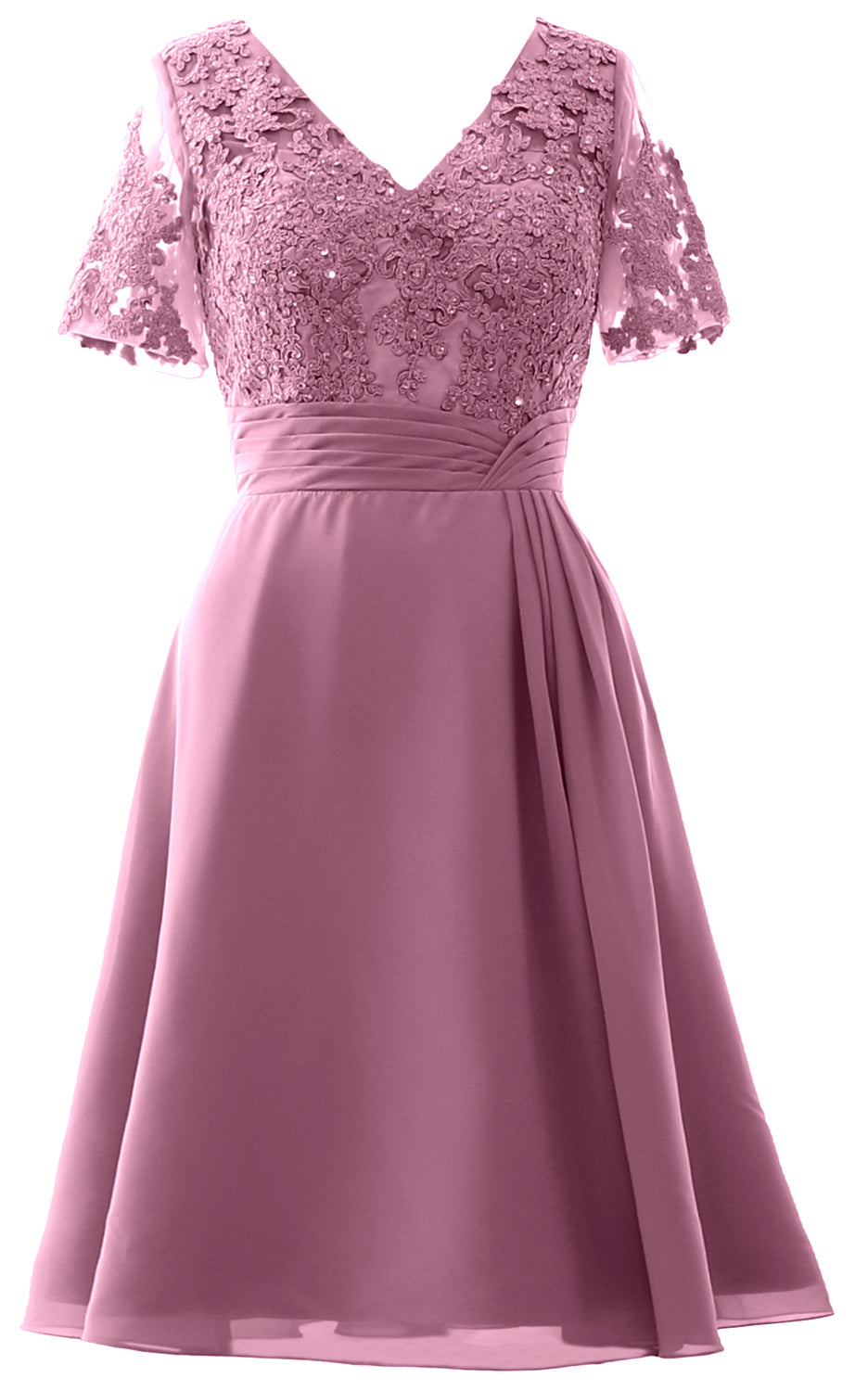 MACloth Frauen Knielange Mutter der Braut Kleider Kurze Ärmel Hochzeit