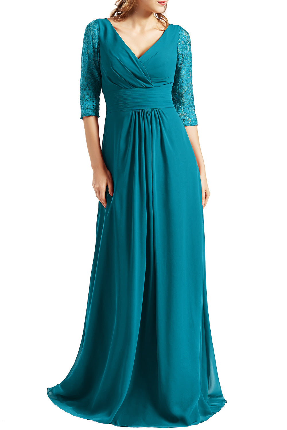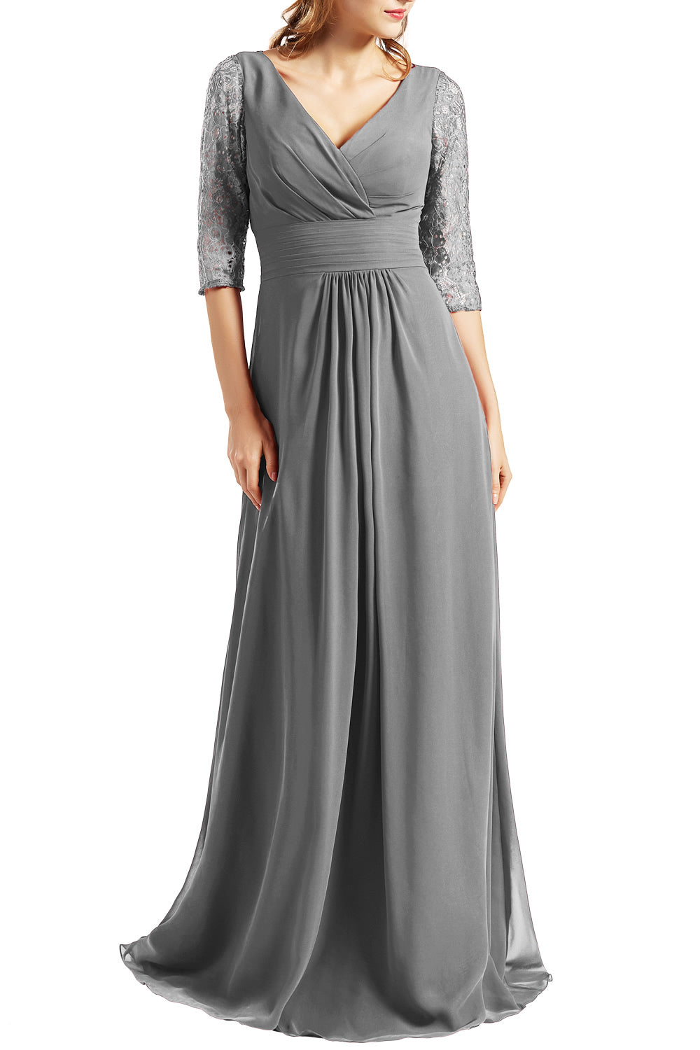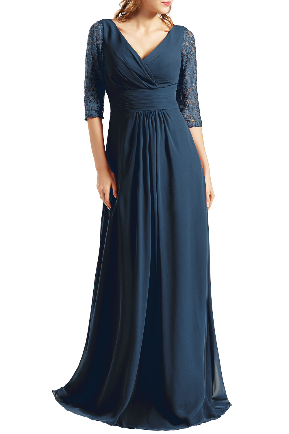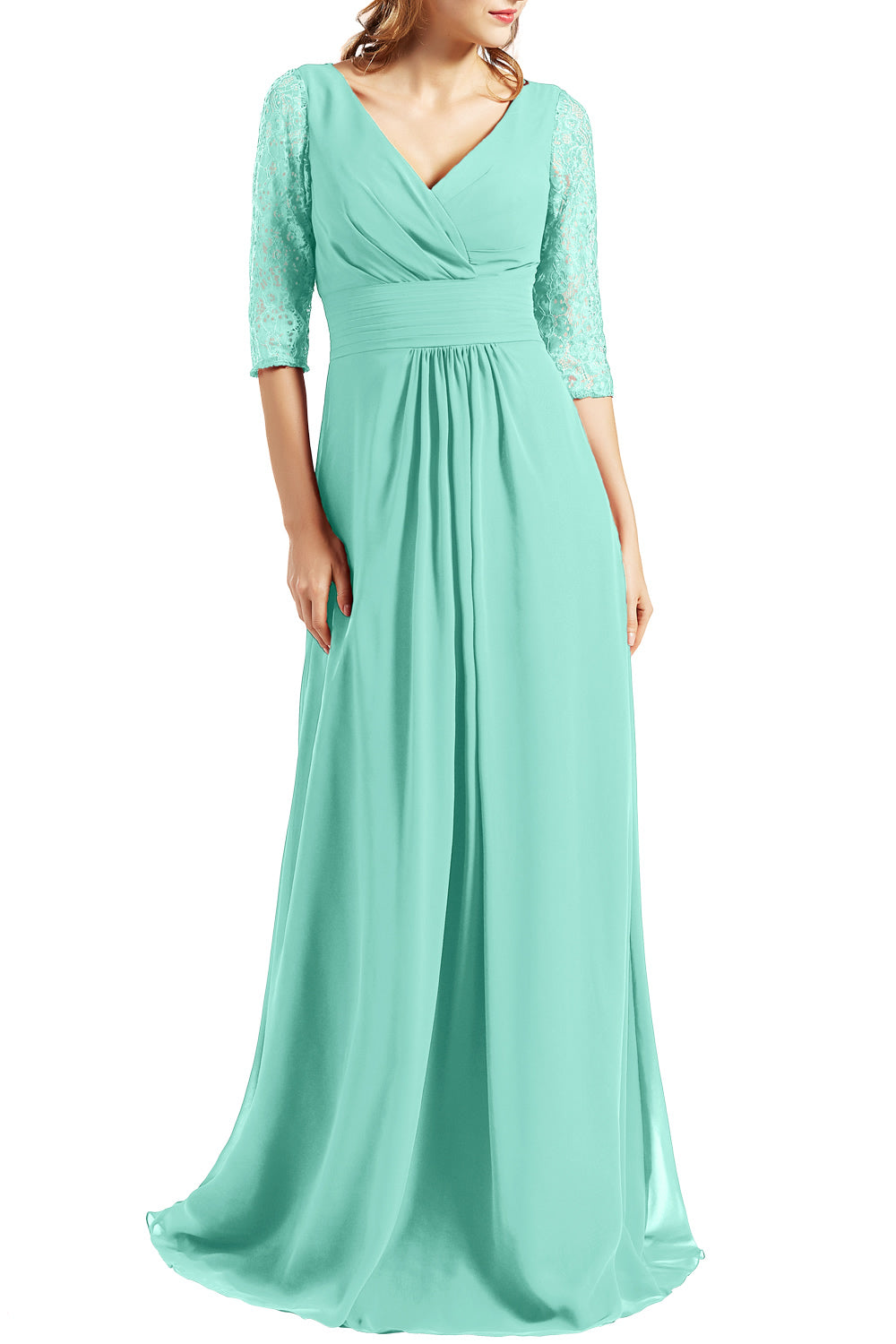 MACloth Langes Abendkleid für die Brautmutter mit V-Ausschnitt und 3/4-Ärmeln für Damen