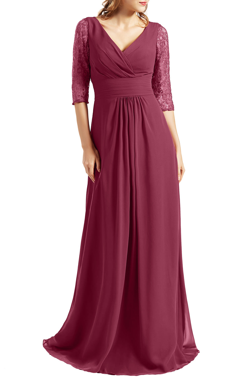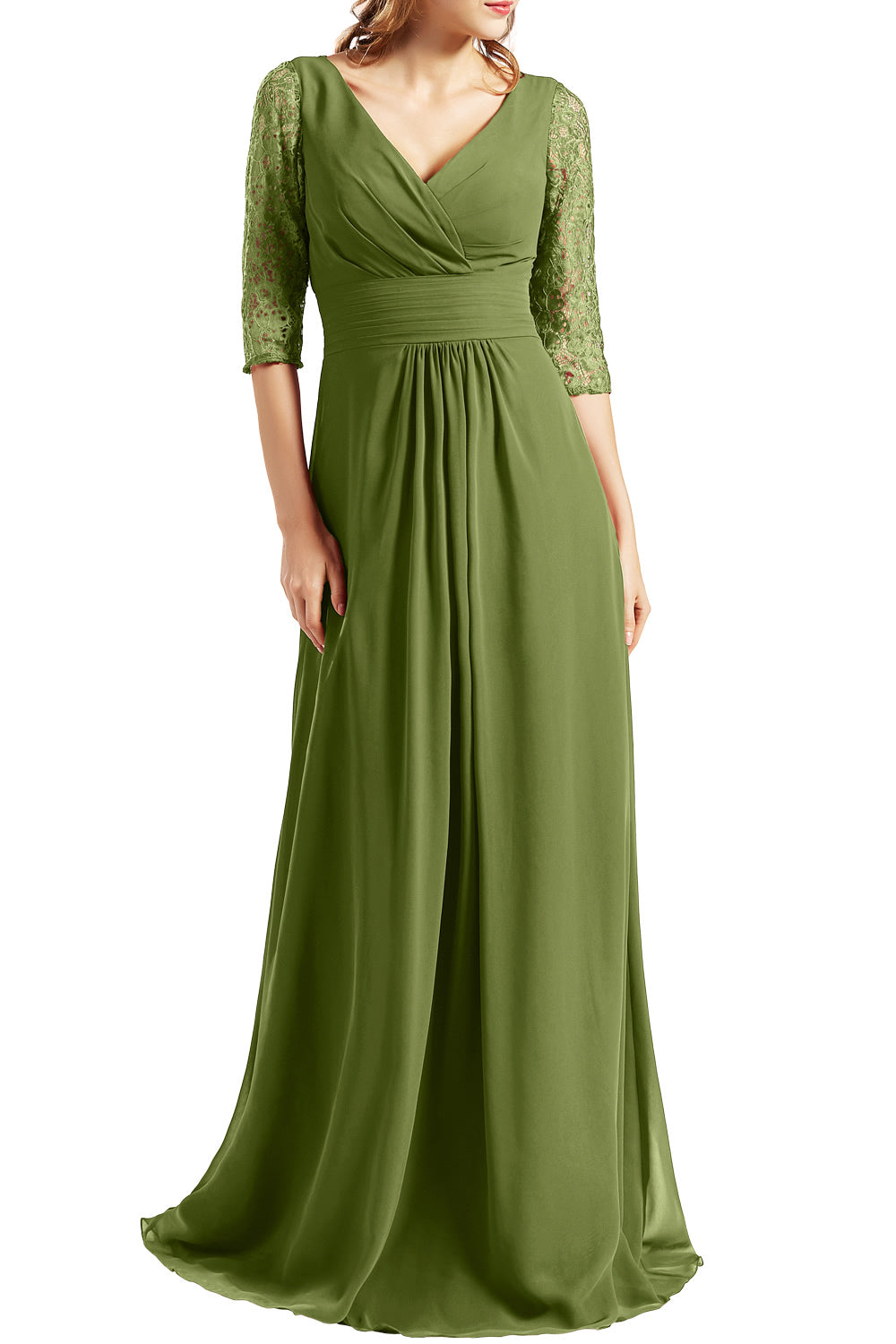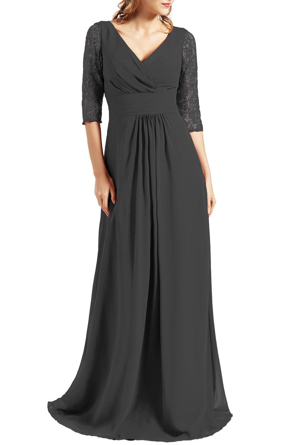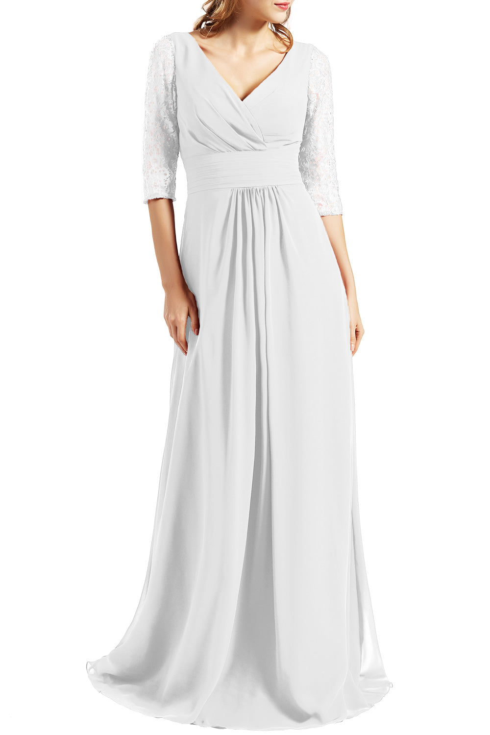 MACloth Langes Abendkleid für die Brautmutter mit V-Ausschnitt und 3/4-Ärmeln für Damen