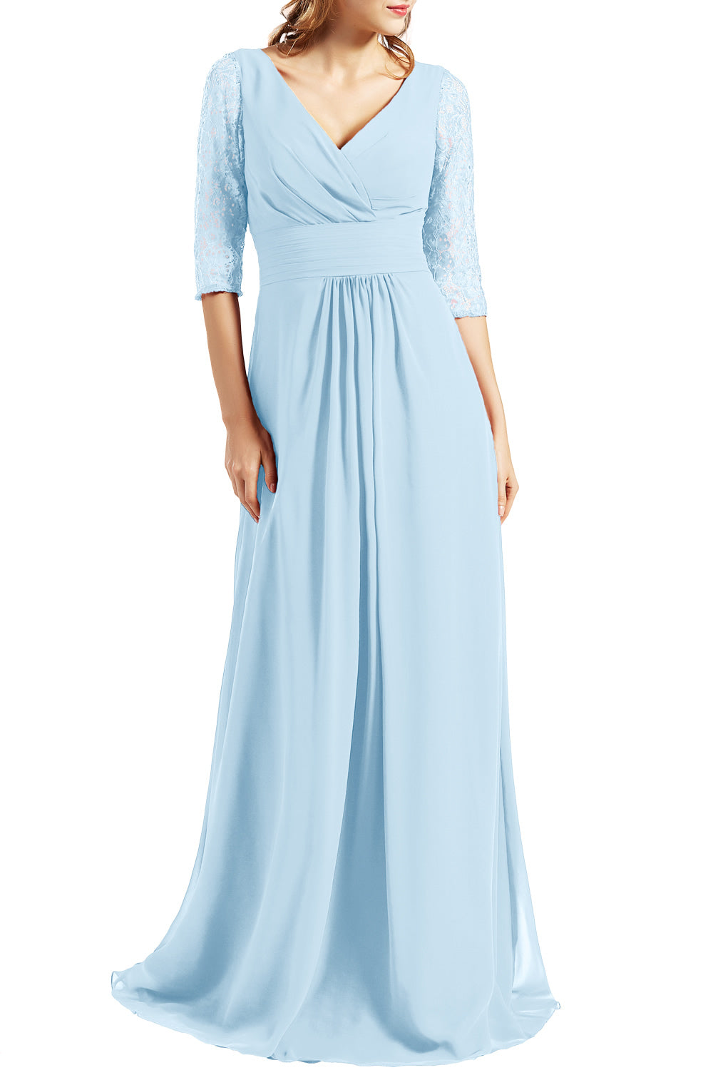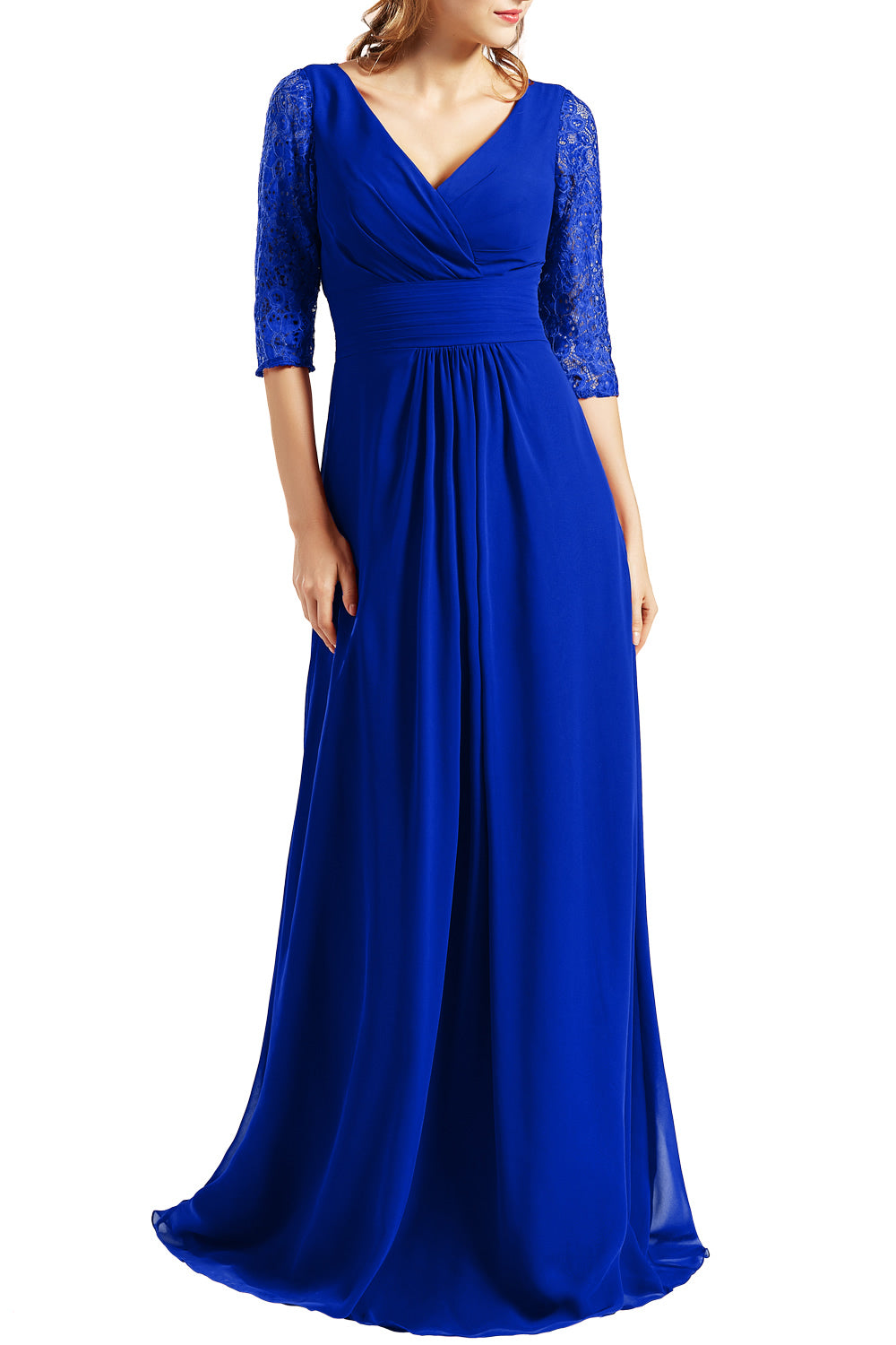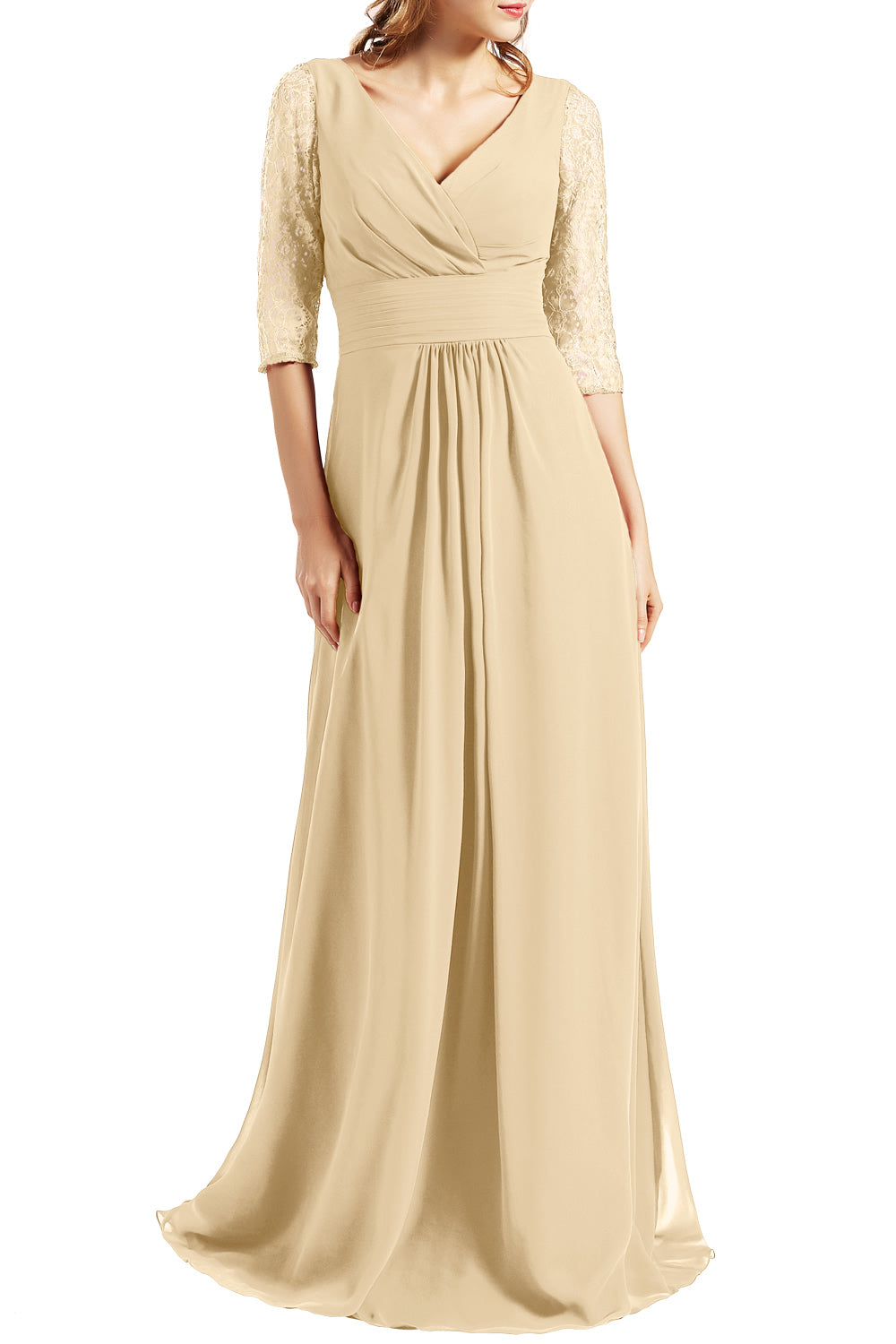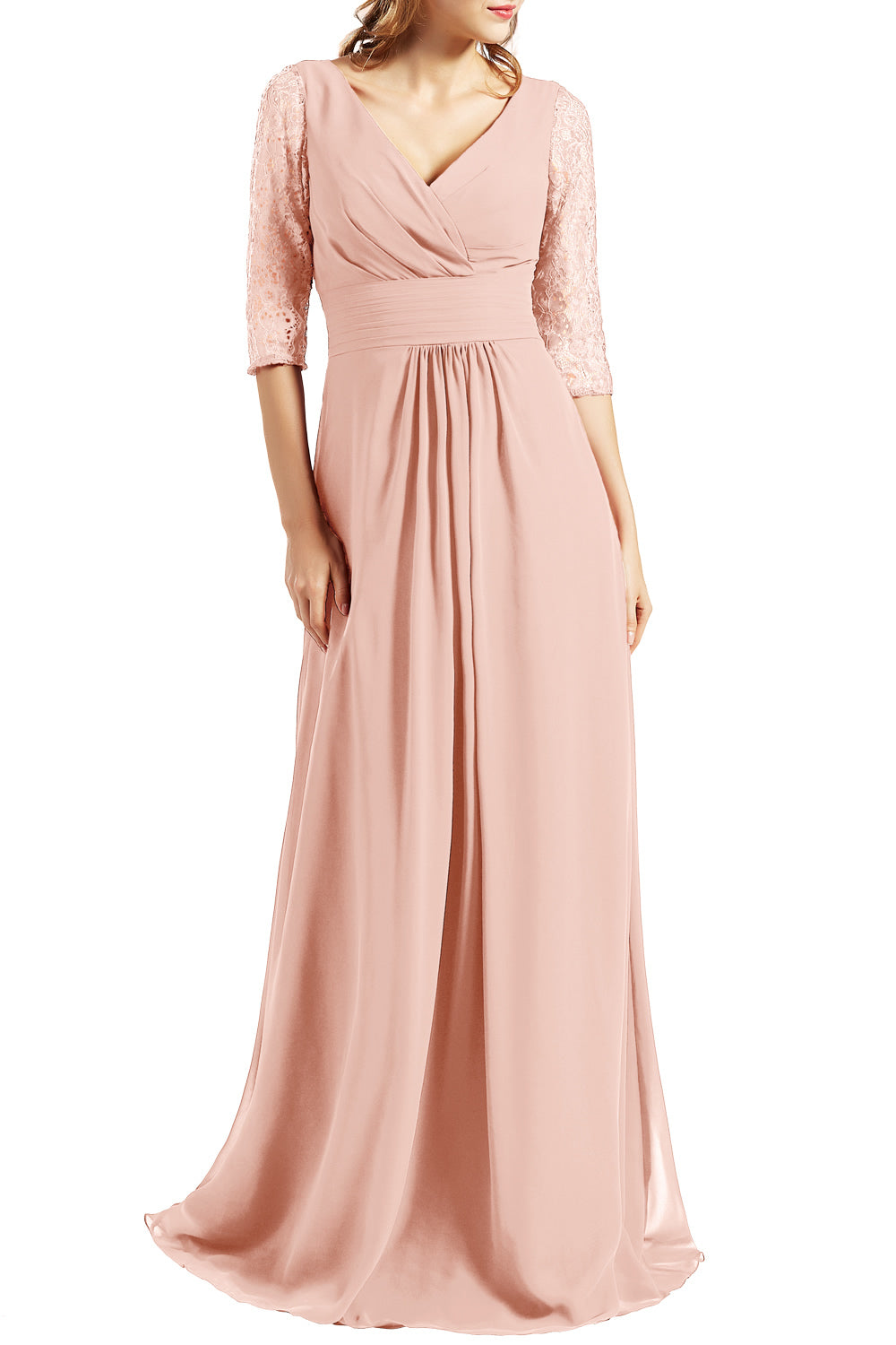 MACloth Langes Abendkleid für die Brautmutter mit V-Ausschnitt und 3/4-Ärmeln für Damen