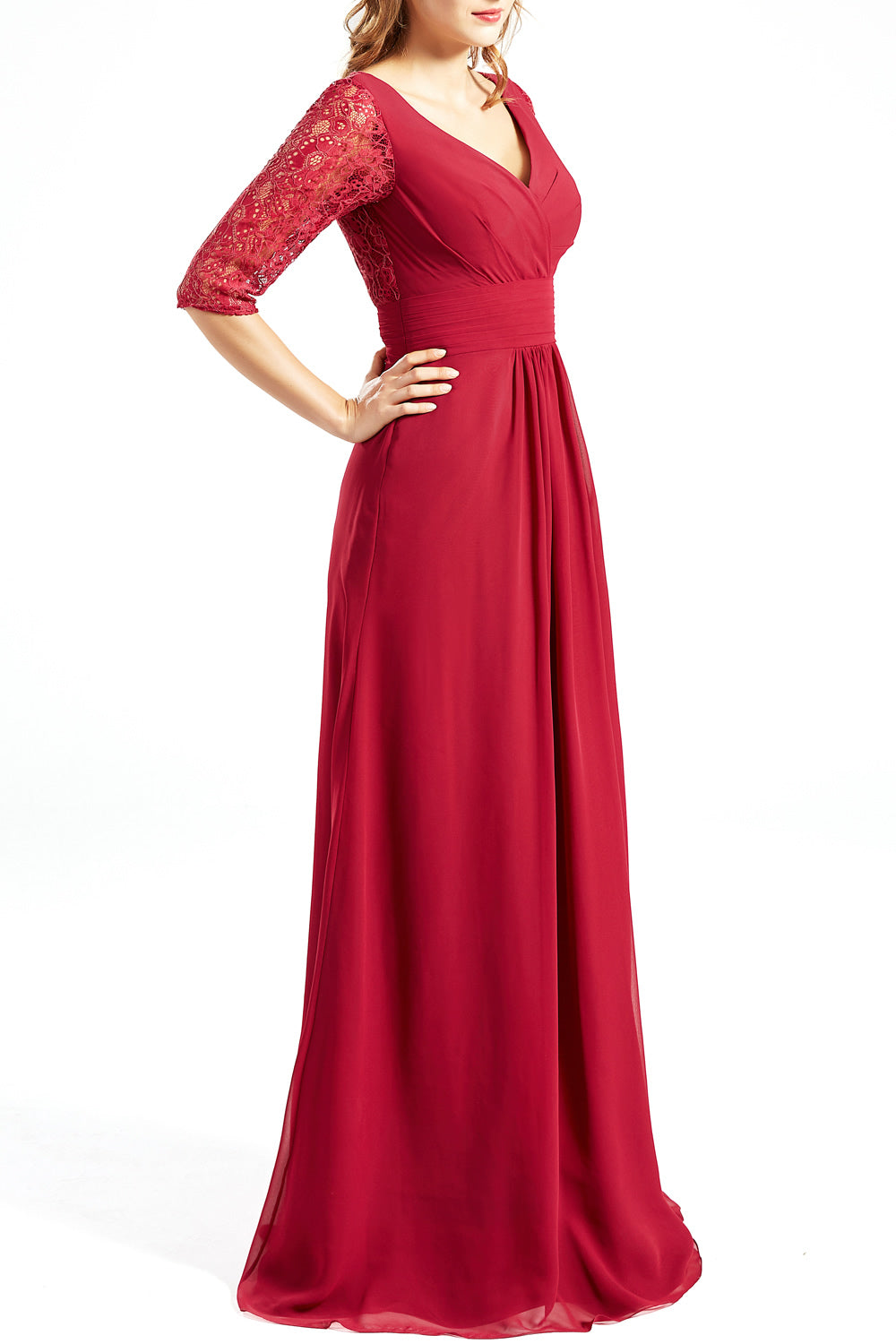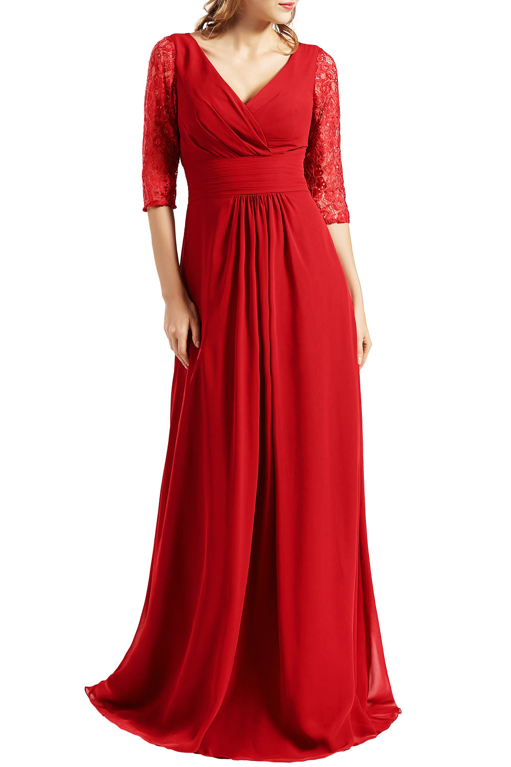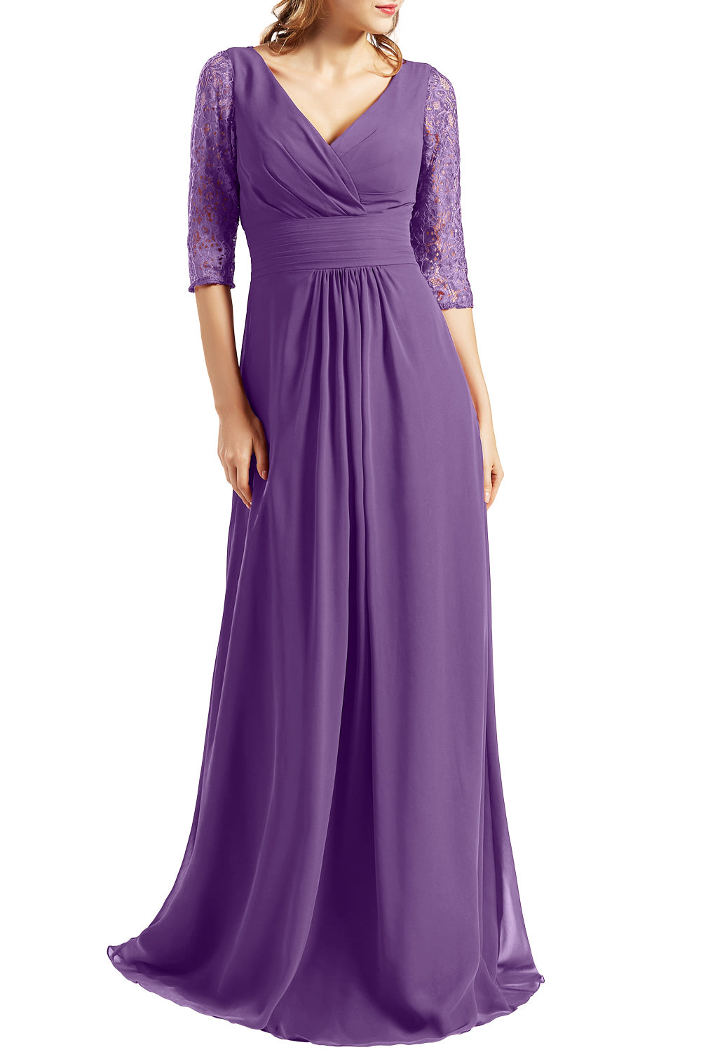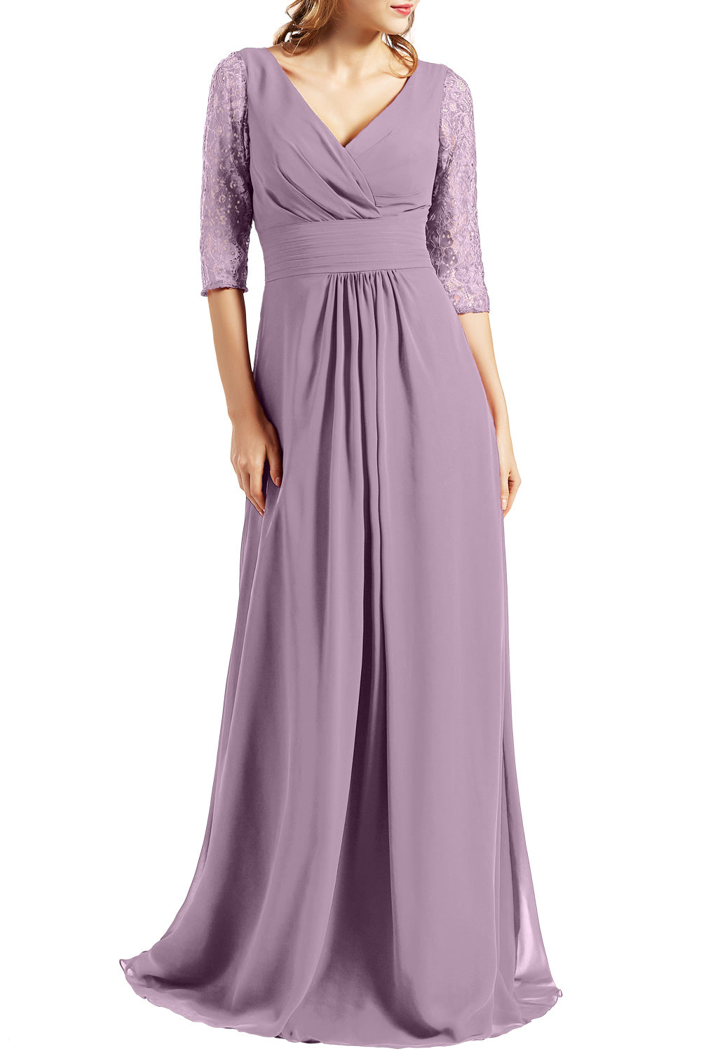 MACloth Langes Abendkleid für die Brautmutter mit V-Ausschnitt und 3/4-Ärmeln für Damen