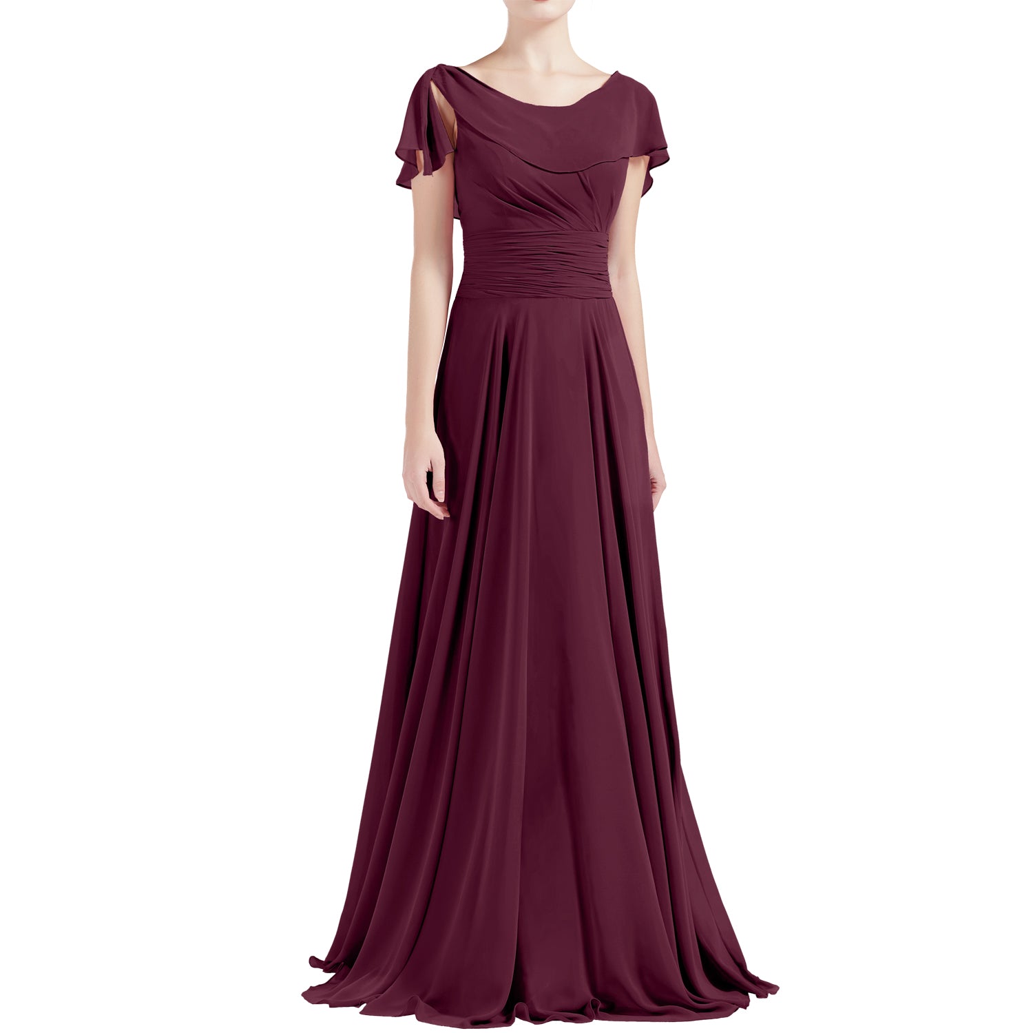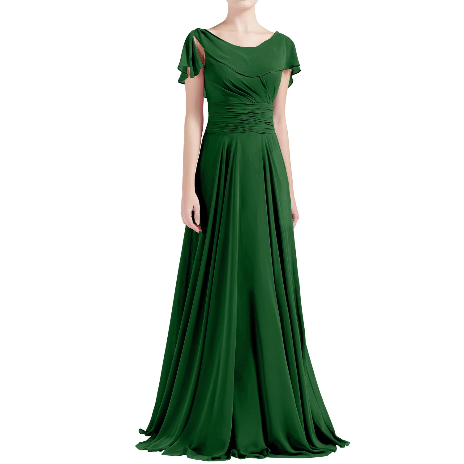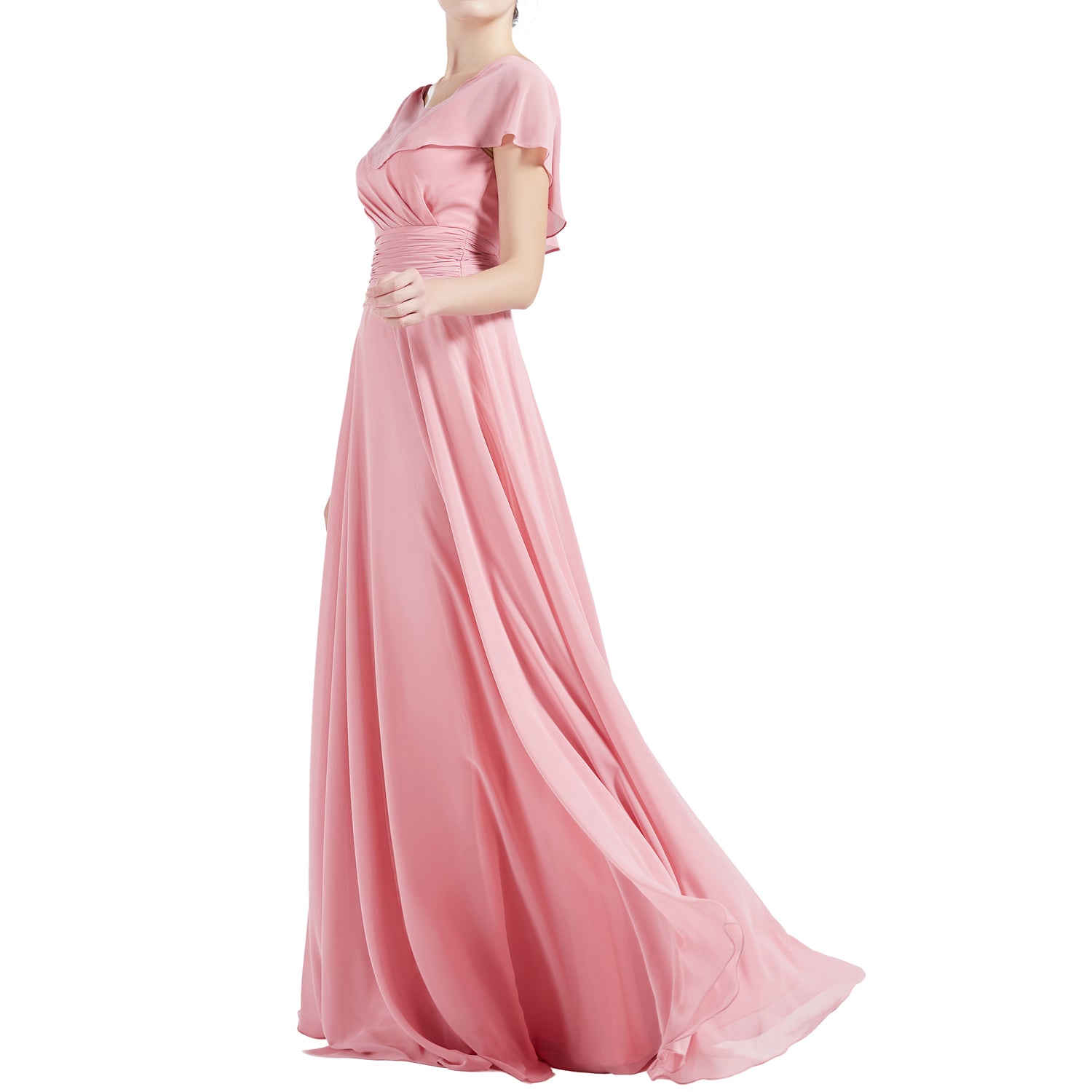 MACloth Damen O-Ausschnitt Rüschen Kurze Ärmel A-Linie Maxikleid Hochzeit Brautjungfernkleid