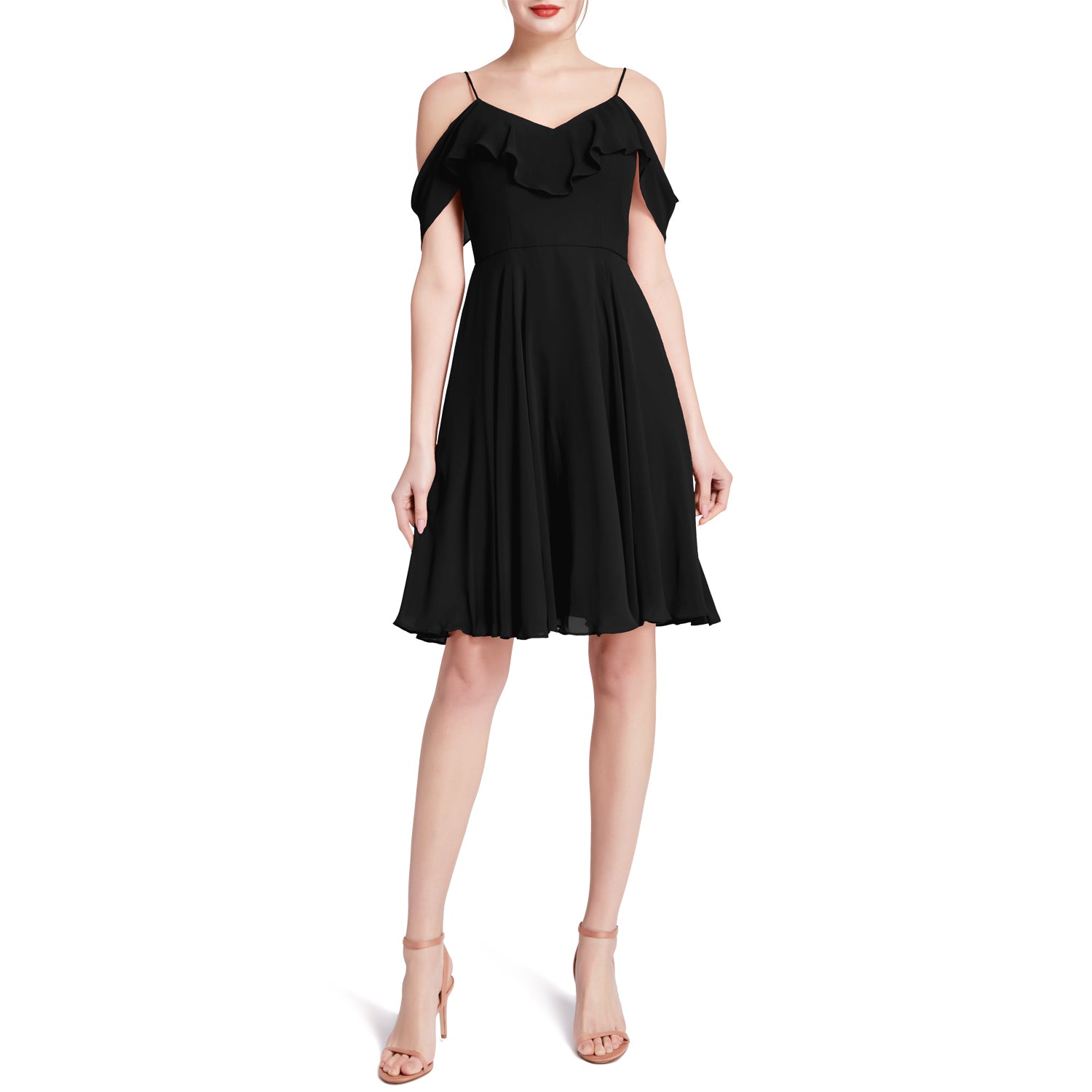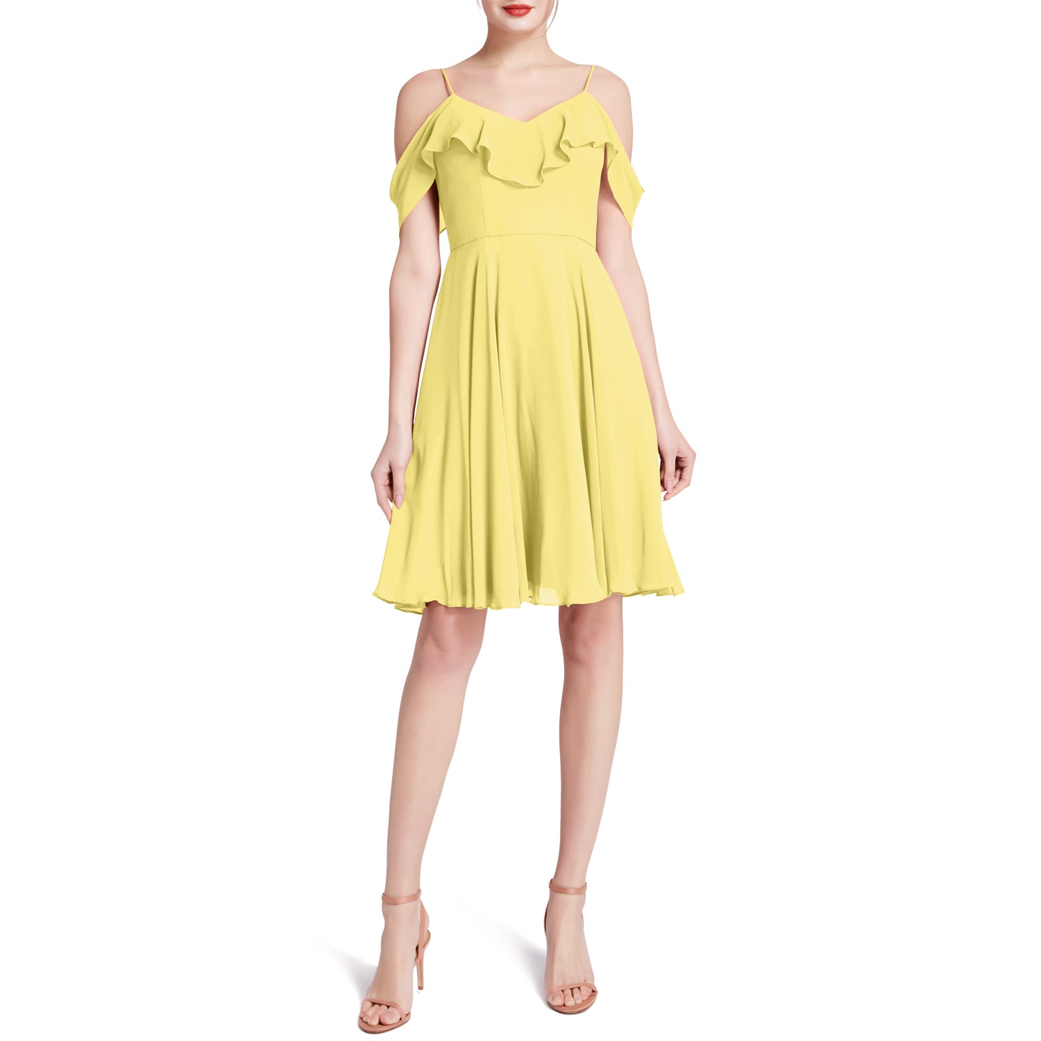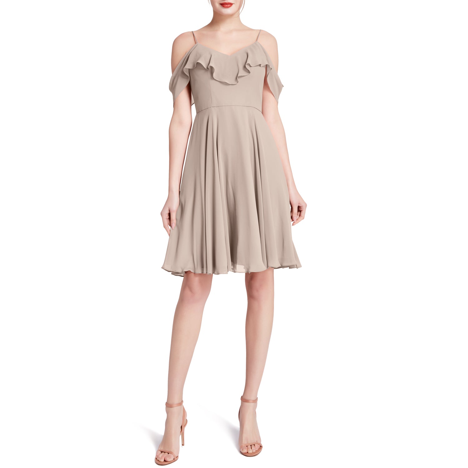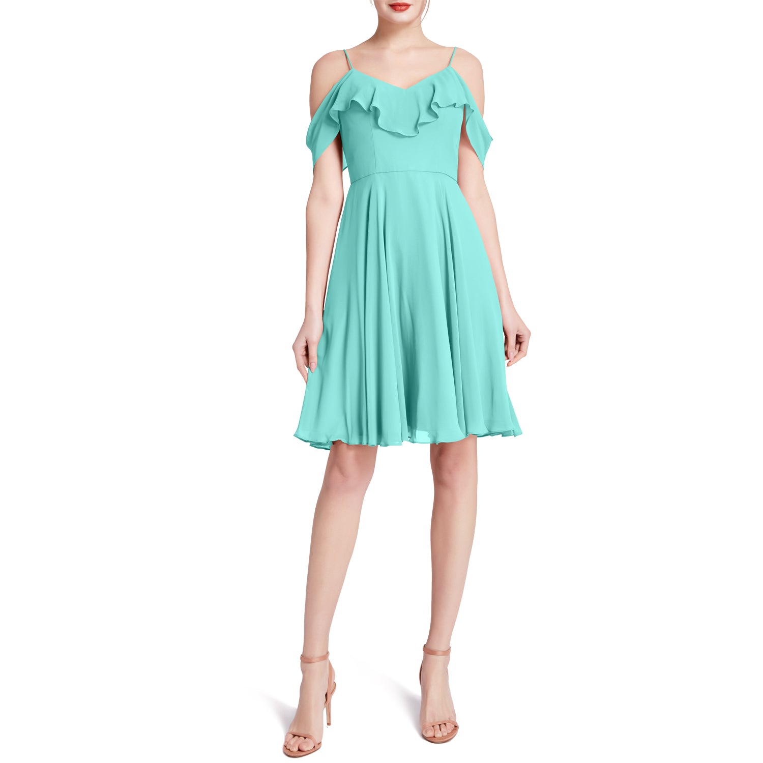 MACloth Damen-Kleid mit kalten Schultern und Rüschen, kurz, für Hochzeit, Party, Brautjungfern