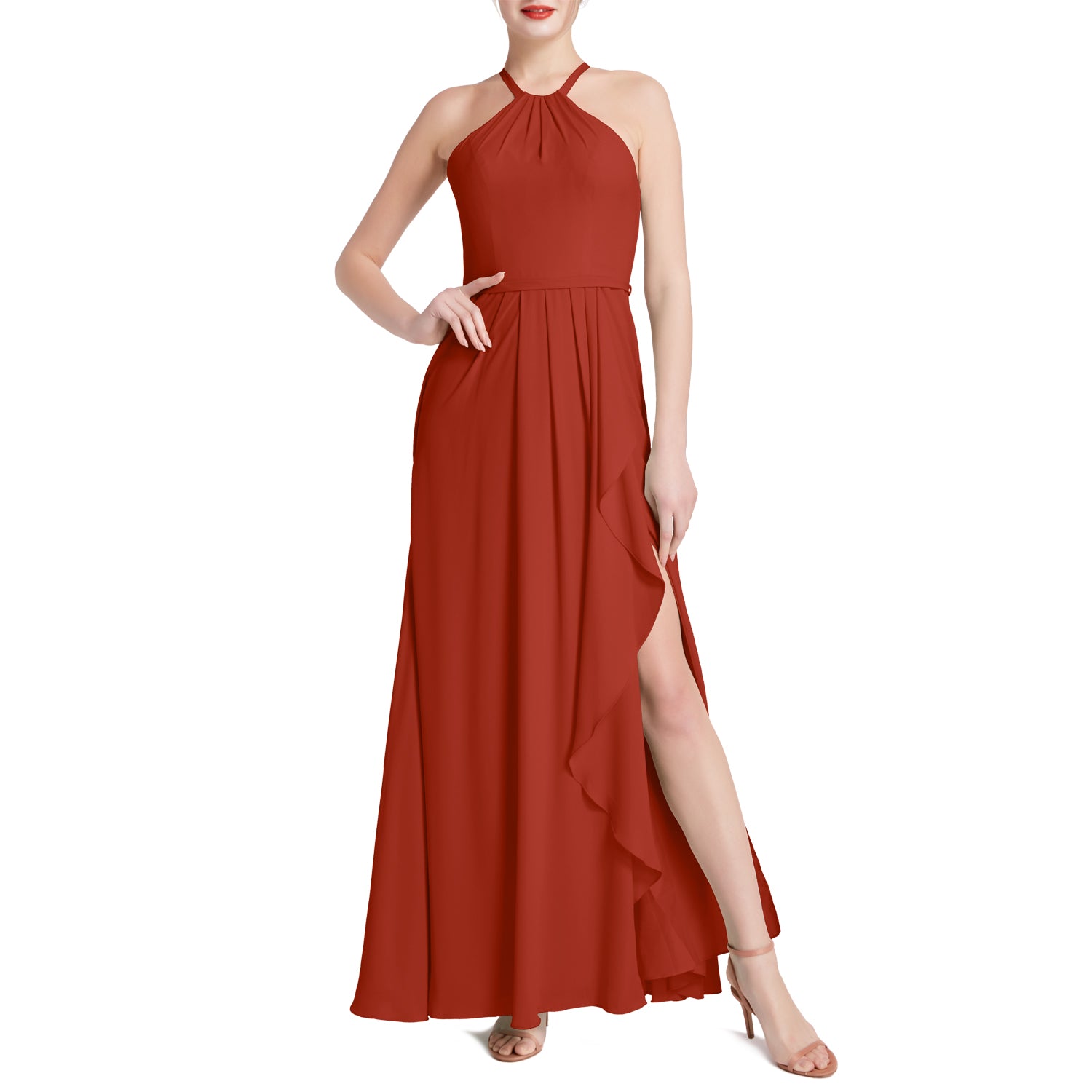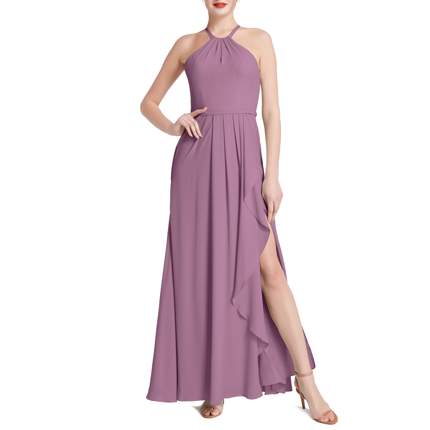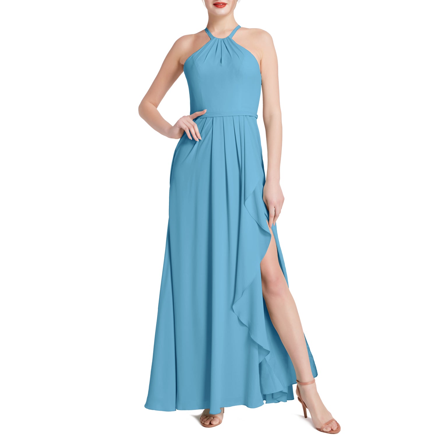 MACloth Damen Neckholder Langes Maxikleid für Hochzeit, Party, Brautjungfern, mit drapiertem Schlitz