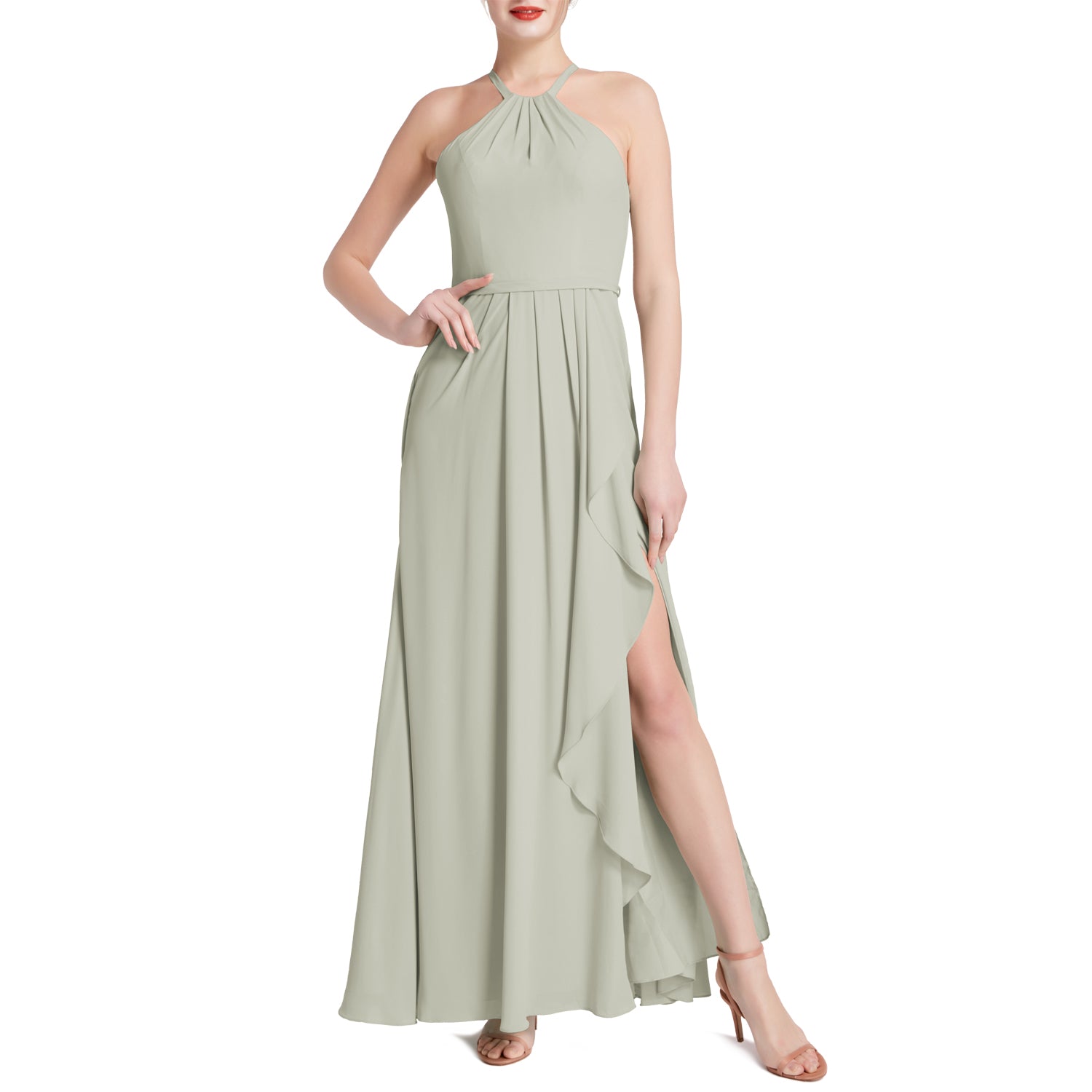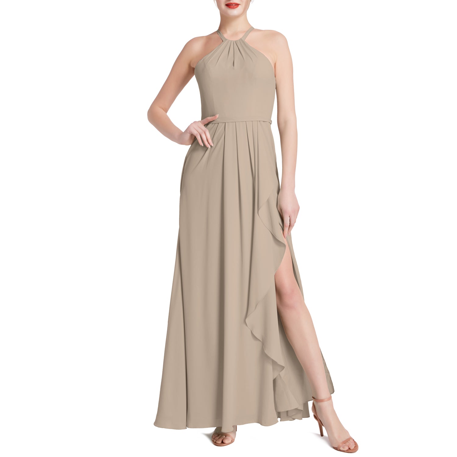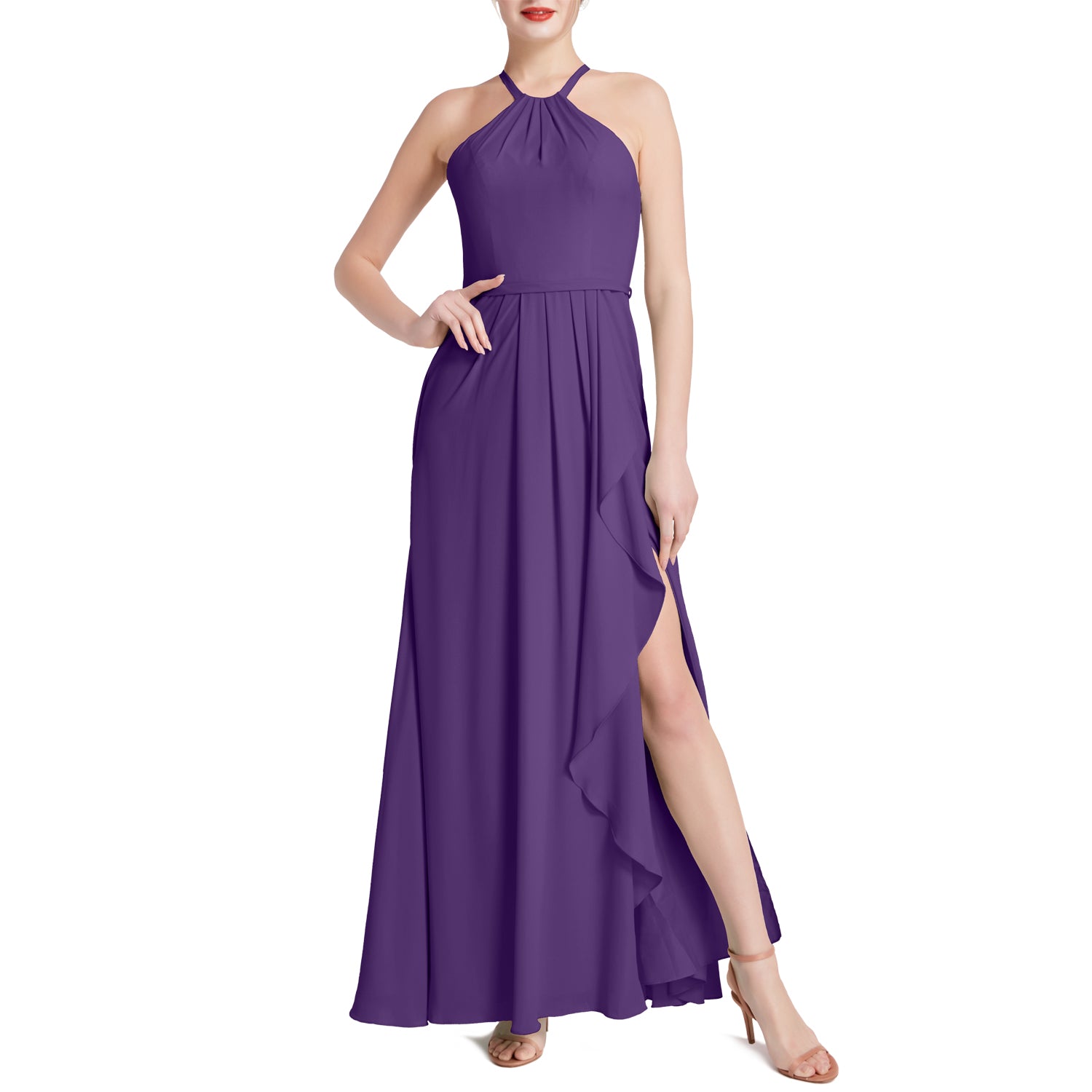 MACloth Damen Neckholder Langes Maxikleid für Hochzeit, Party, Brautjungfern, mit drapiertem Schlitz