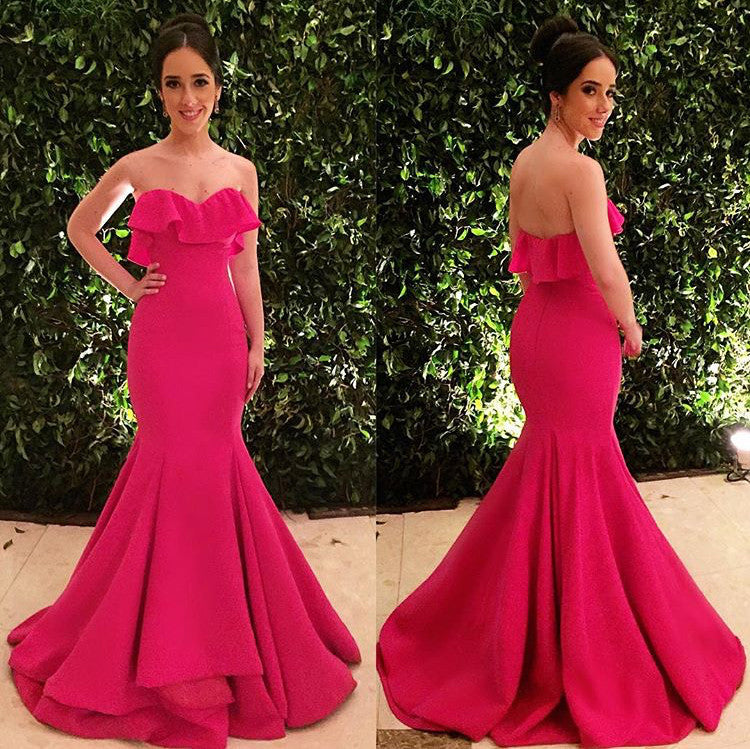 MACloth Meerjungfrau trägerloses langes Ballkleid Fuchsia formelles Abendkleid