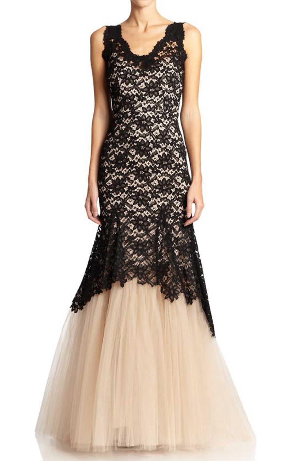 MACloth Meerjungfrau-Träger V-Ausschnitt Spitzentüll Ballkleid Zweifarbig Abendkleid