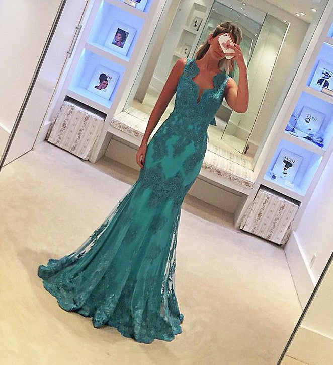 MACloth Träger V-Ausschnitt Spitze Langes Ballkleid Fuchsia Spitze Abendkleid