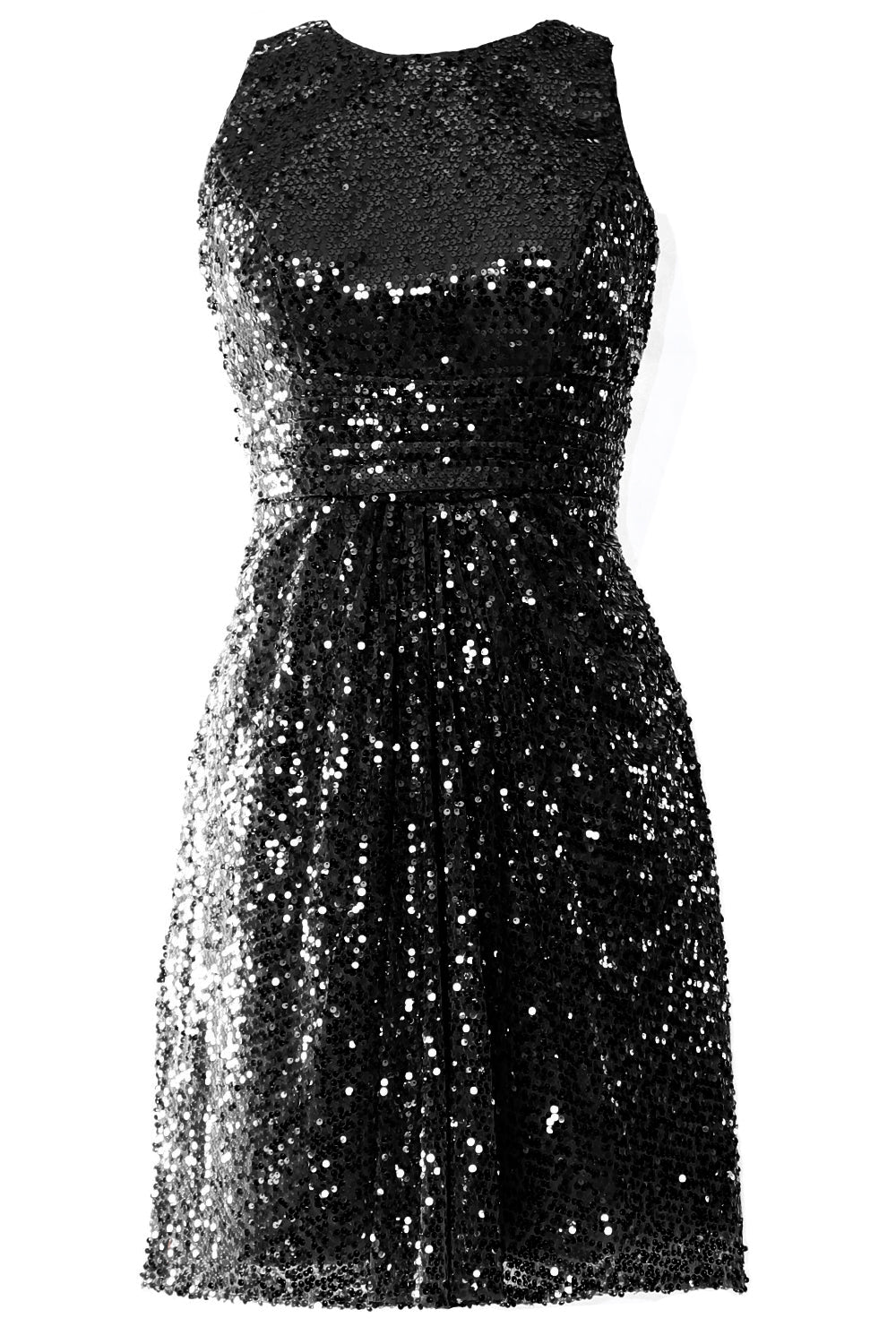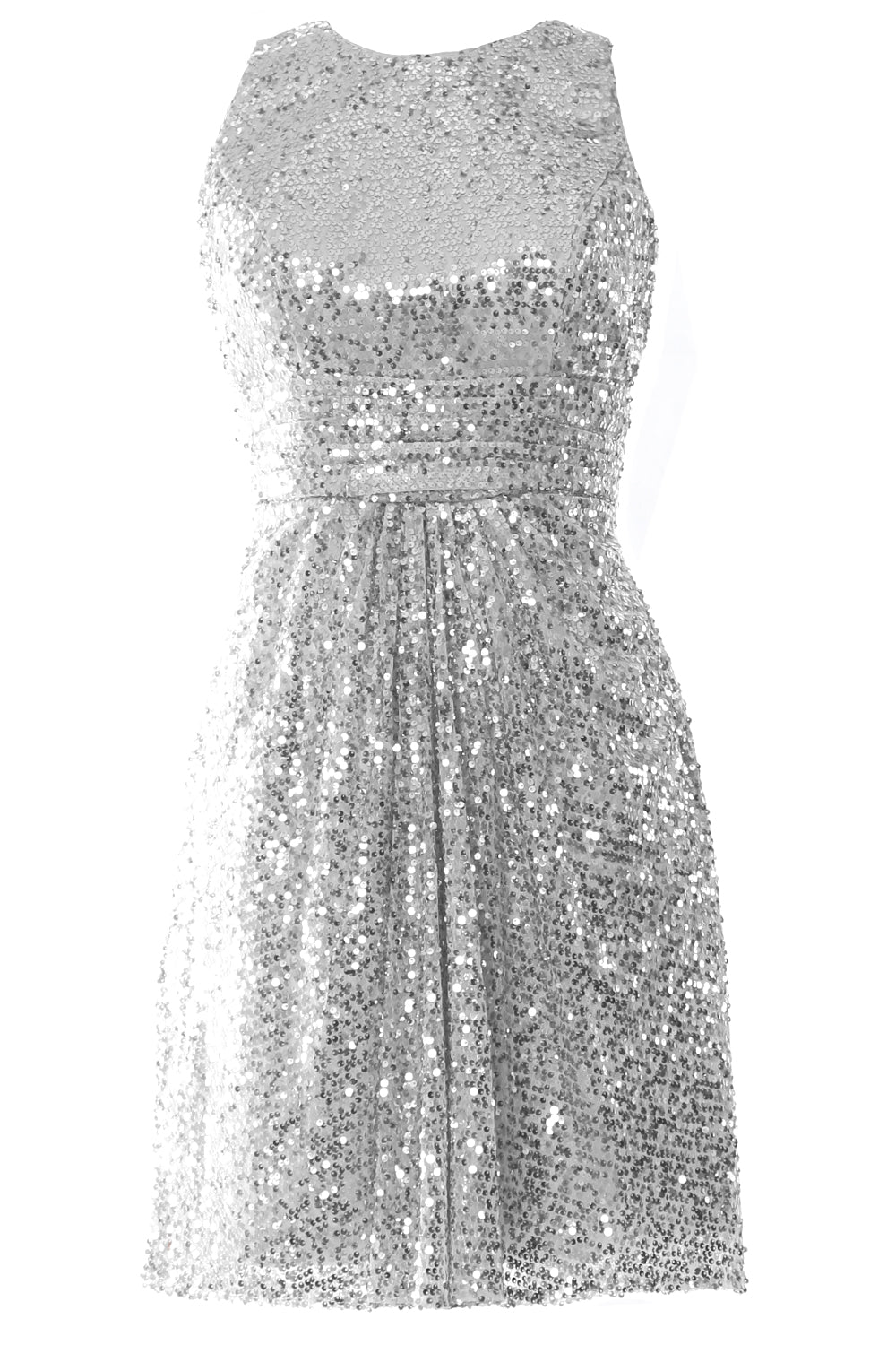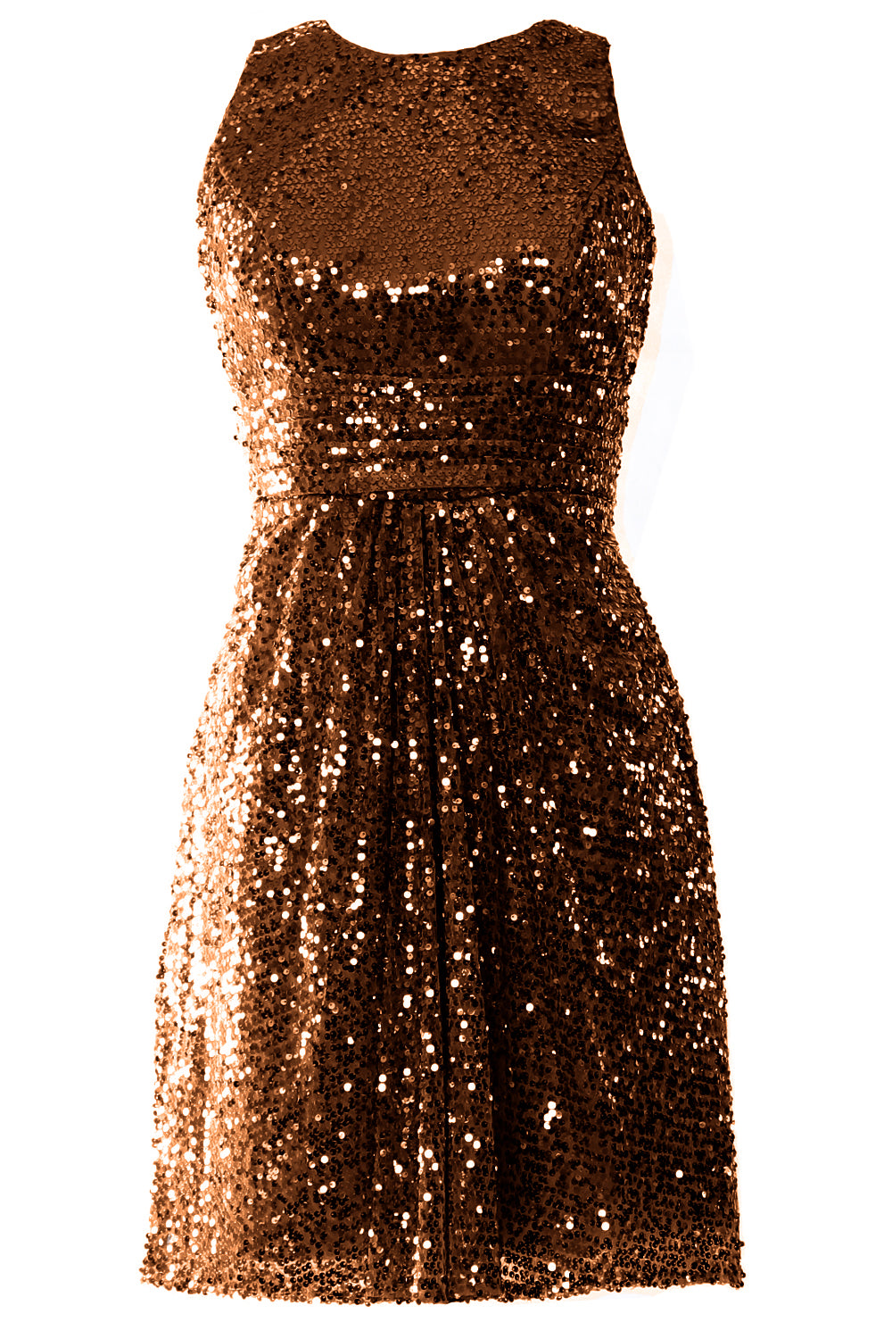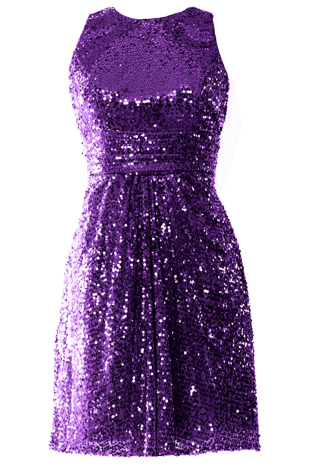MACloth Damen O-Ausschnitt Kurze Pailletten Brautjungfernkleider