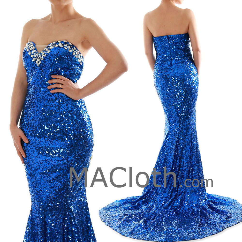 Meerjungfrau-Kleid, trägerlos, herzförmiger Ausschnitt, Pailletten, Königsblau, Ball-/Abendkleid 160181