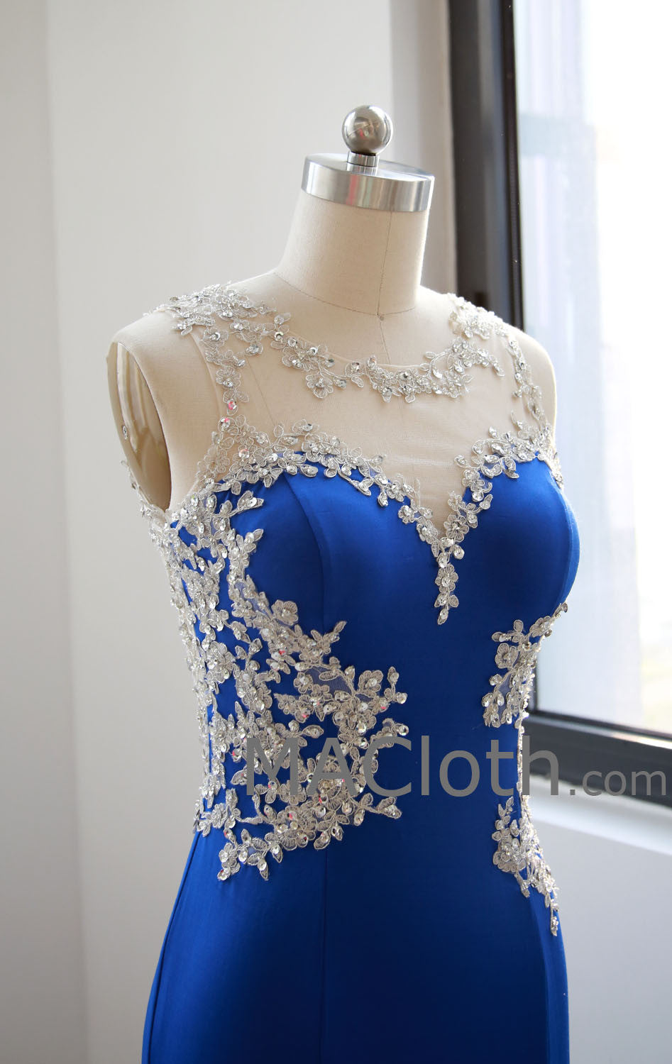 Meerjungfrau-Träger, Spitzenjersey, Königsblau, Ballkleid, Abendkleid 160108