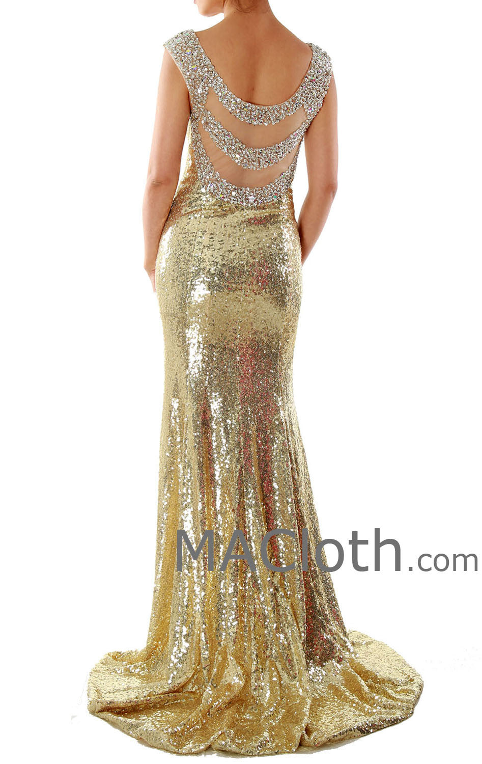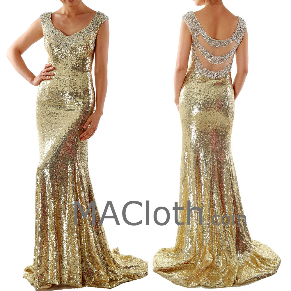 Meerjungfrau-Träger, herzförmiger Ausschnitt, langes, goldenes Abend-/Ballkleid mit Pailletten 160139