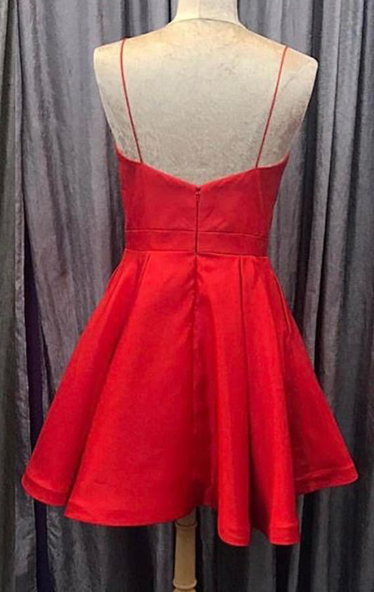 MACLoth Deep V Neck Mini Prom Homecoming Dress Red Cocktail Formal Gown