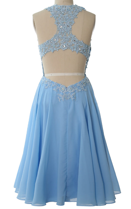 MACloth Women Halter Chiffon Cocktail Dress Short Bridesmaid Gown with Open Back
