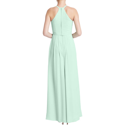 MACloth Women Halter Long Bridesmaid Dress Chiffom Simple Prom Formal Gown
