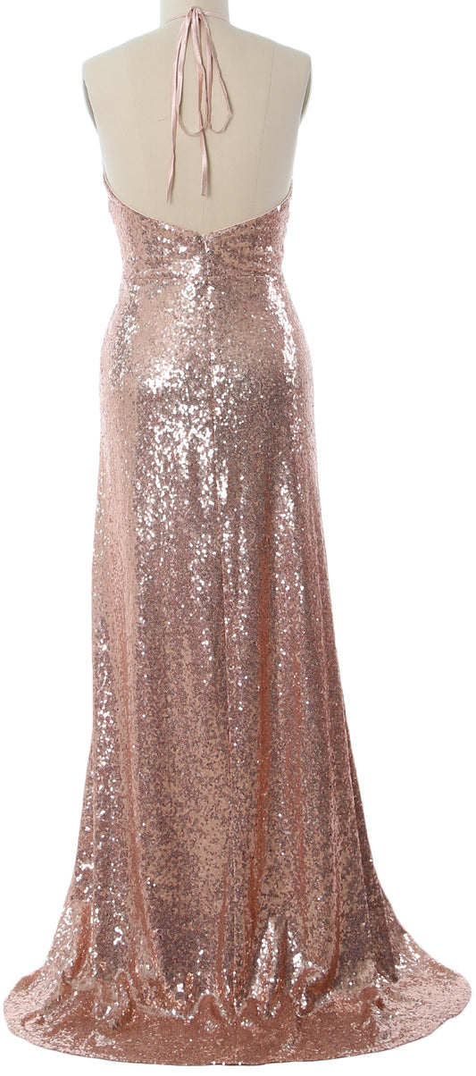 MACloth Women Halter Long Sequin Bridesmaid Dresses Party Evening Gown Maxi