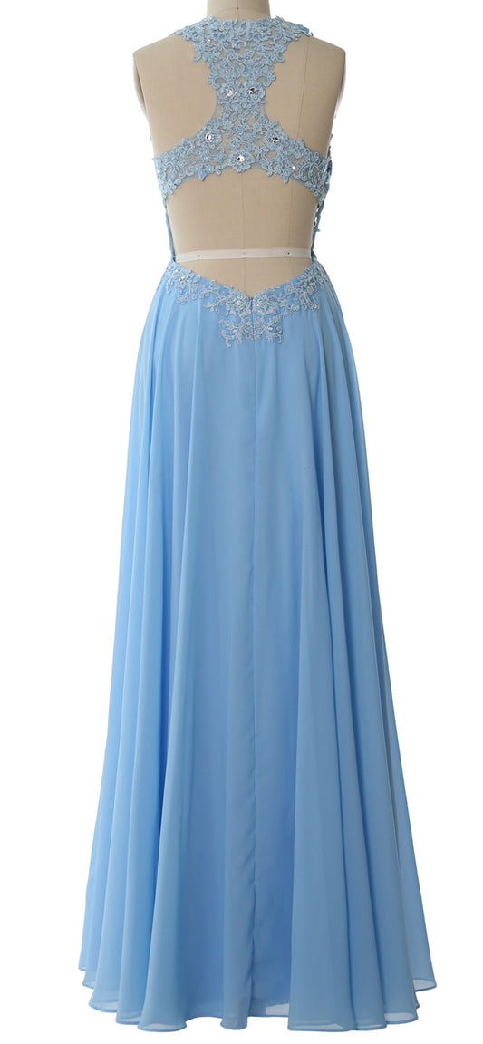 MACloth Elegant High Neck Long Prom Dress Lace Chiffon Formal Party Evening Gown