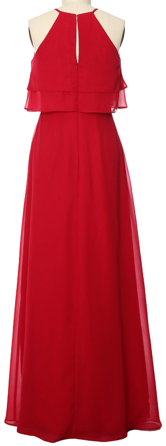 MACloth Halter High Neck Chiffon Long Prom Dress Red Formal Gown