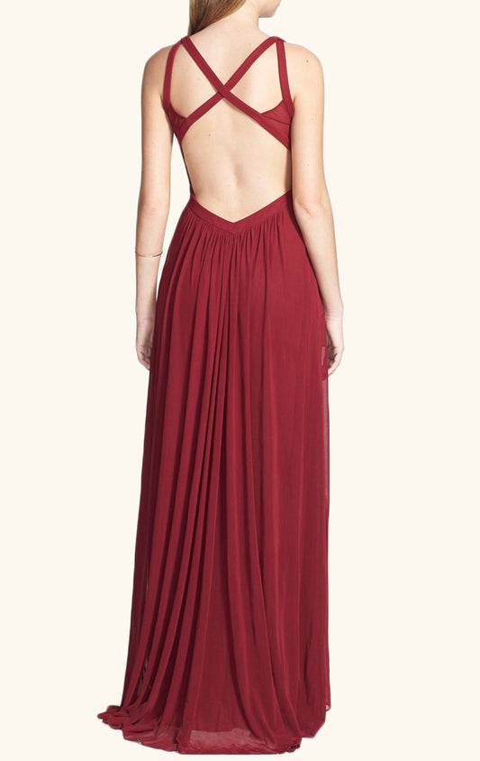 MACloth Halter Chiffon Long Prom Dress with Open Back Burgundy Formal Gown