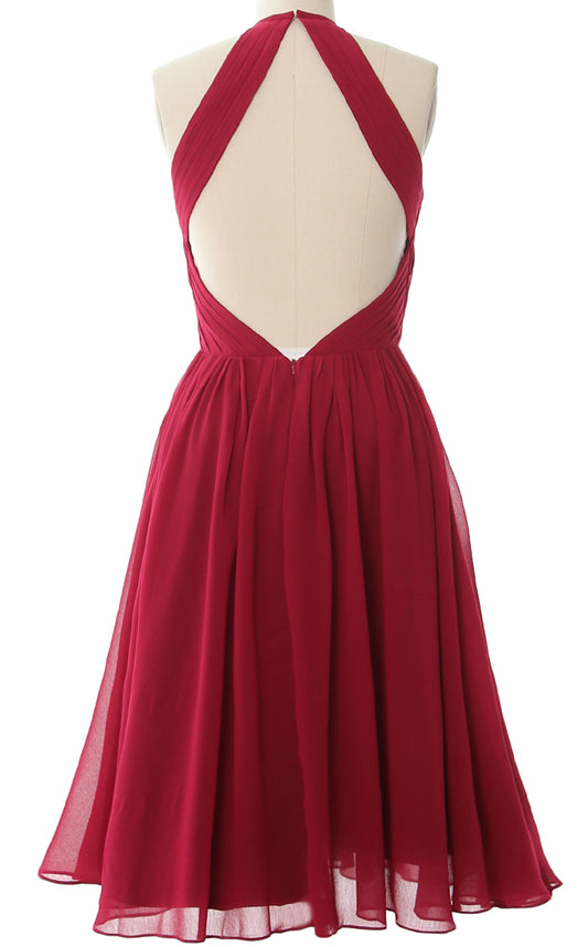 MACloth Women Halter Chiffon Cocktail Dress Short Bridesmaid Gown with Open Back