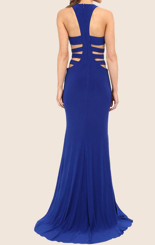 MACloth Sheath Cap Sleeves Jersey Maxi Prom Dress Royal Blue Formal Gown