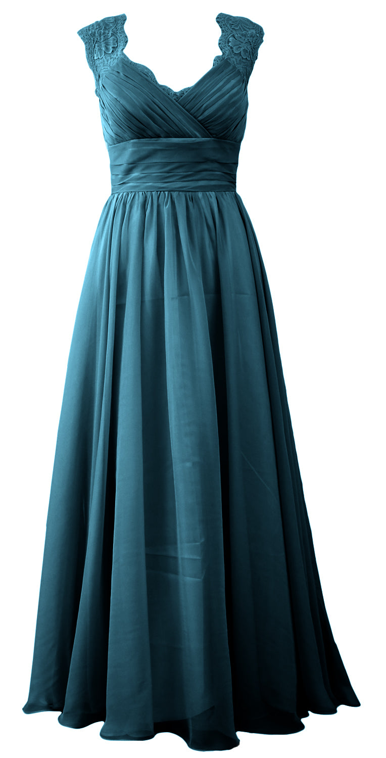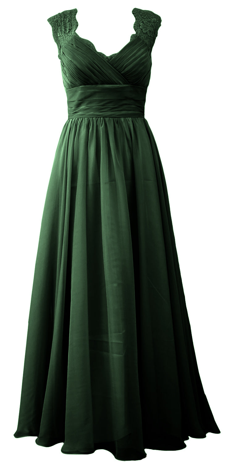MACloth Women Vintage Long Bridesmaid Dress V Neck Lace Formal Evening Gown