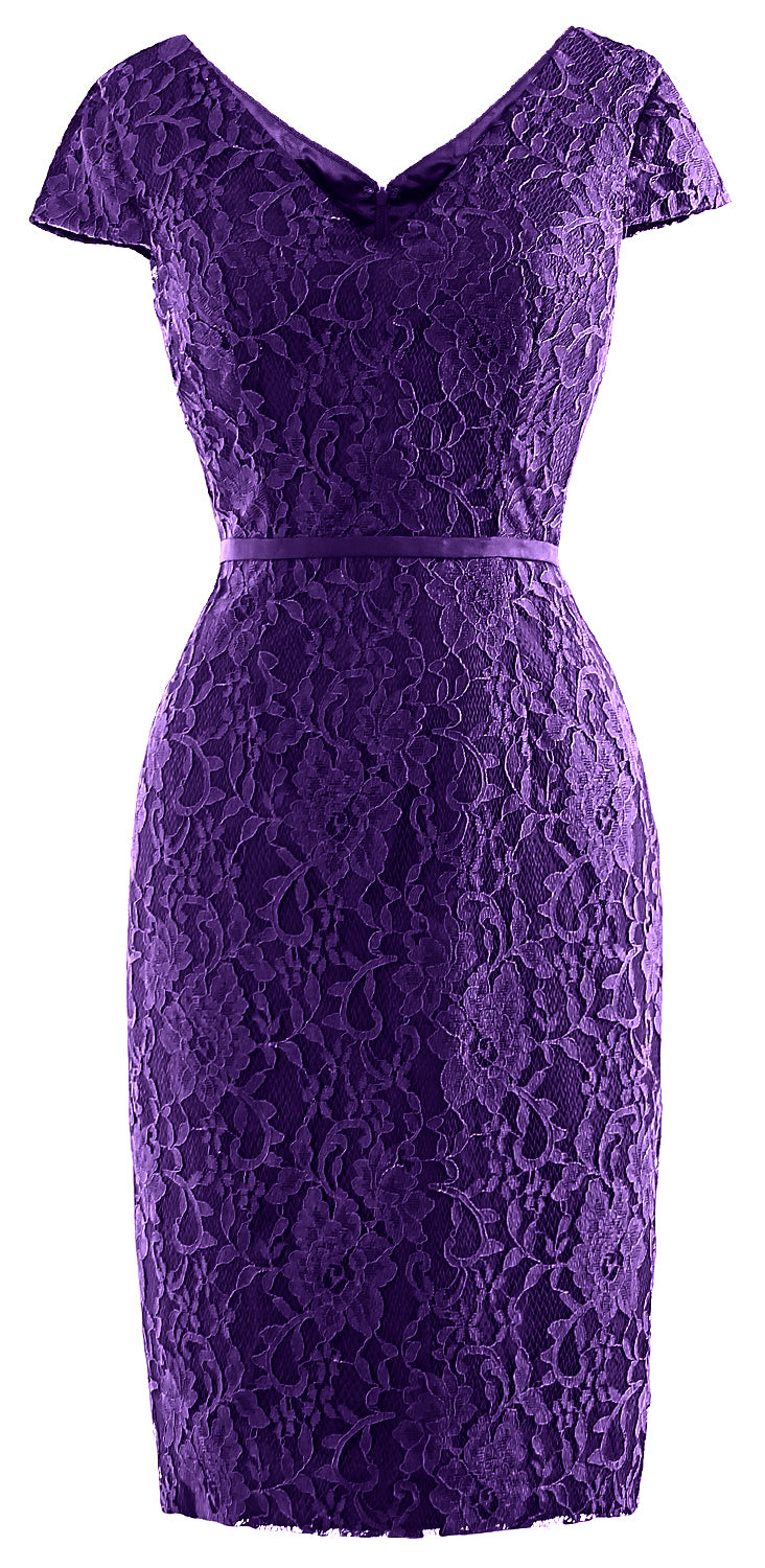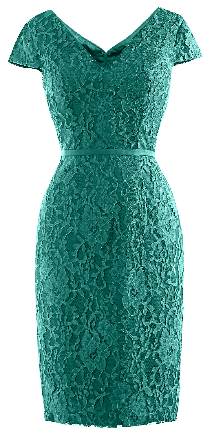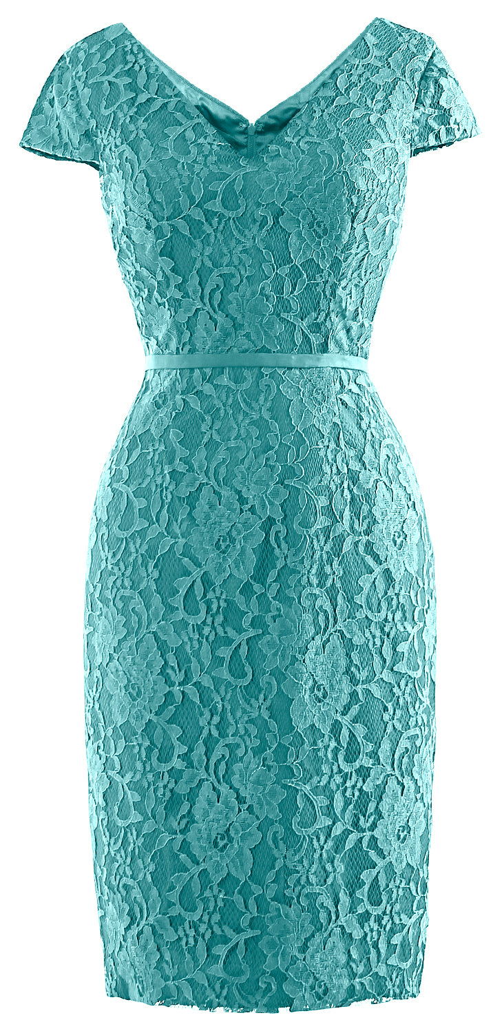 MACloth Women Vintage Short Lace Cap Sleeve Mother of Bride Dress Wedding Party